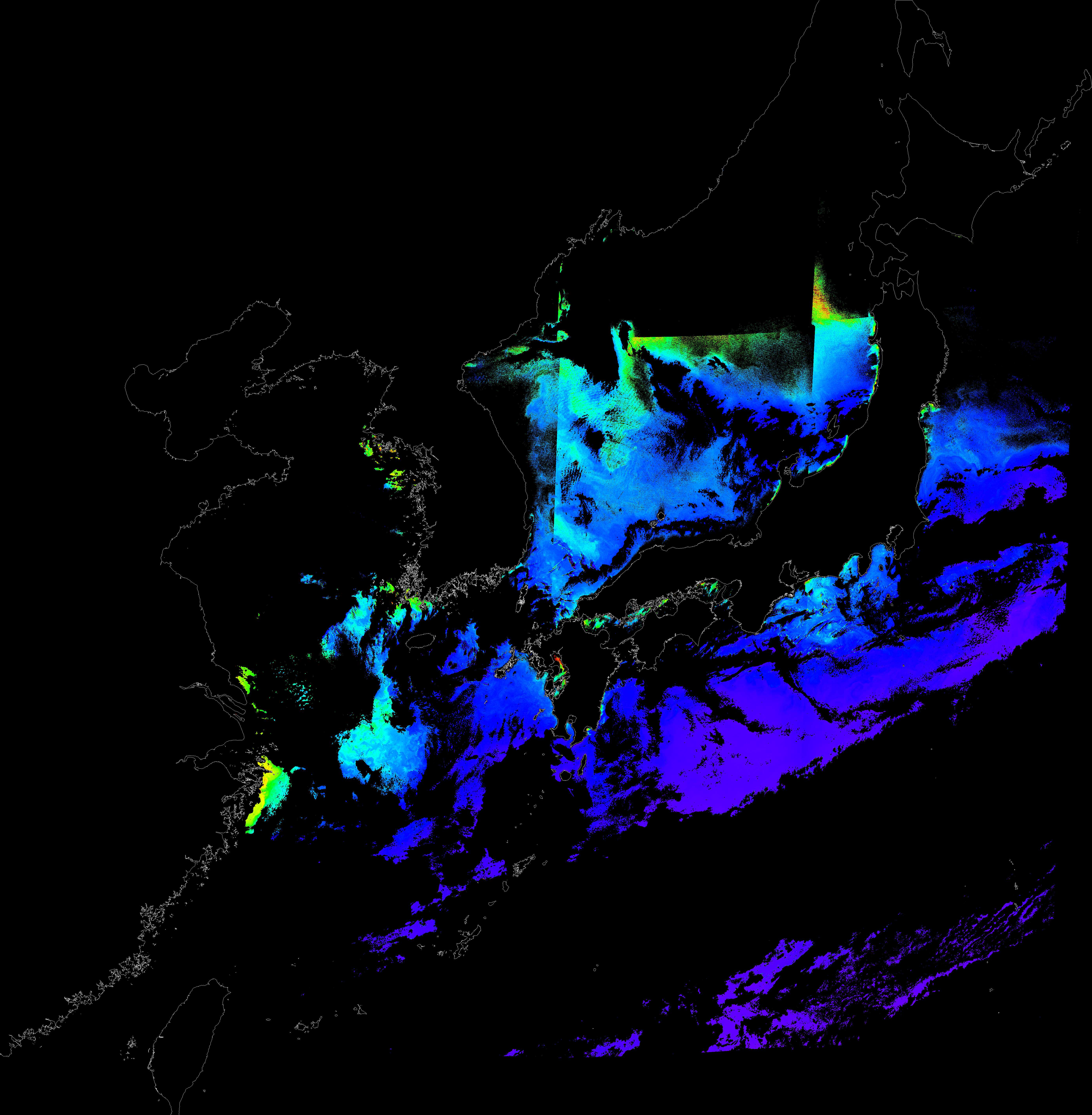 o 2016년 12월 03일 천리안 GOCI 클로로필 a 위성영상입니다.
