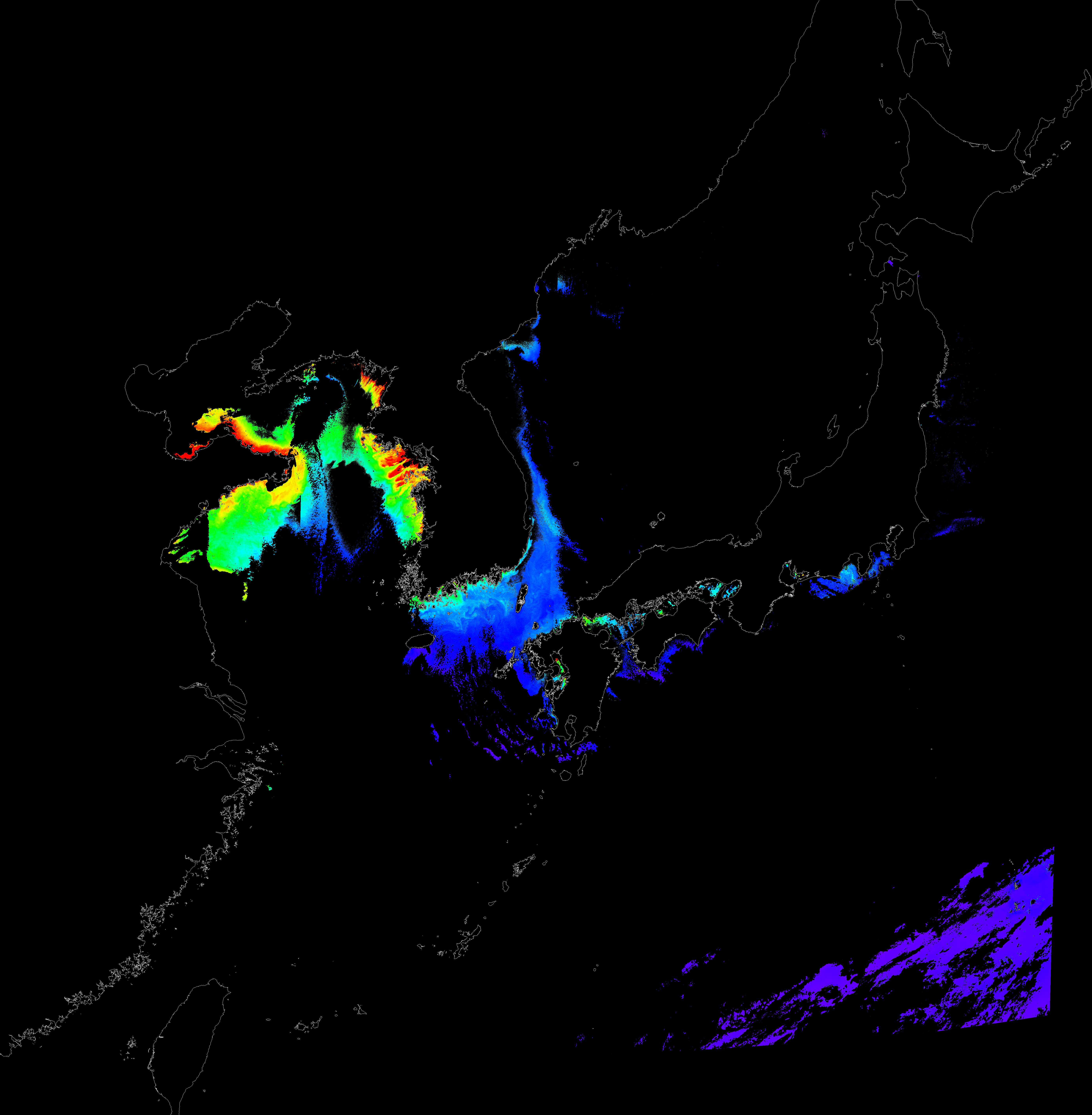 o 2016년 12월 06일 천리안 GOCI 클로로필 a 위성영상입니다.
