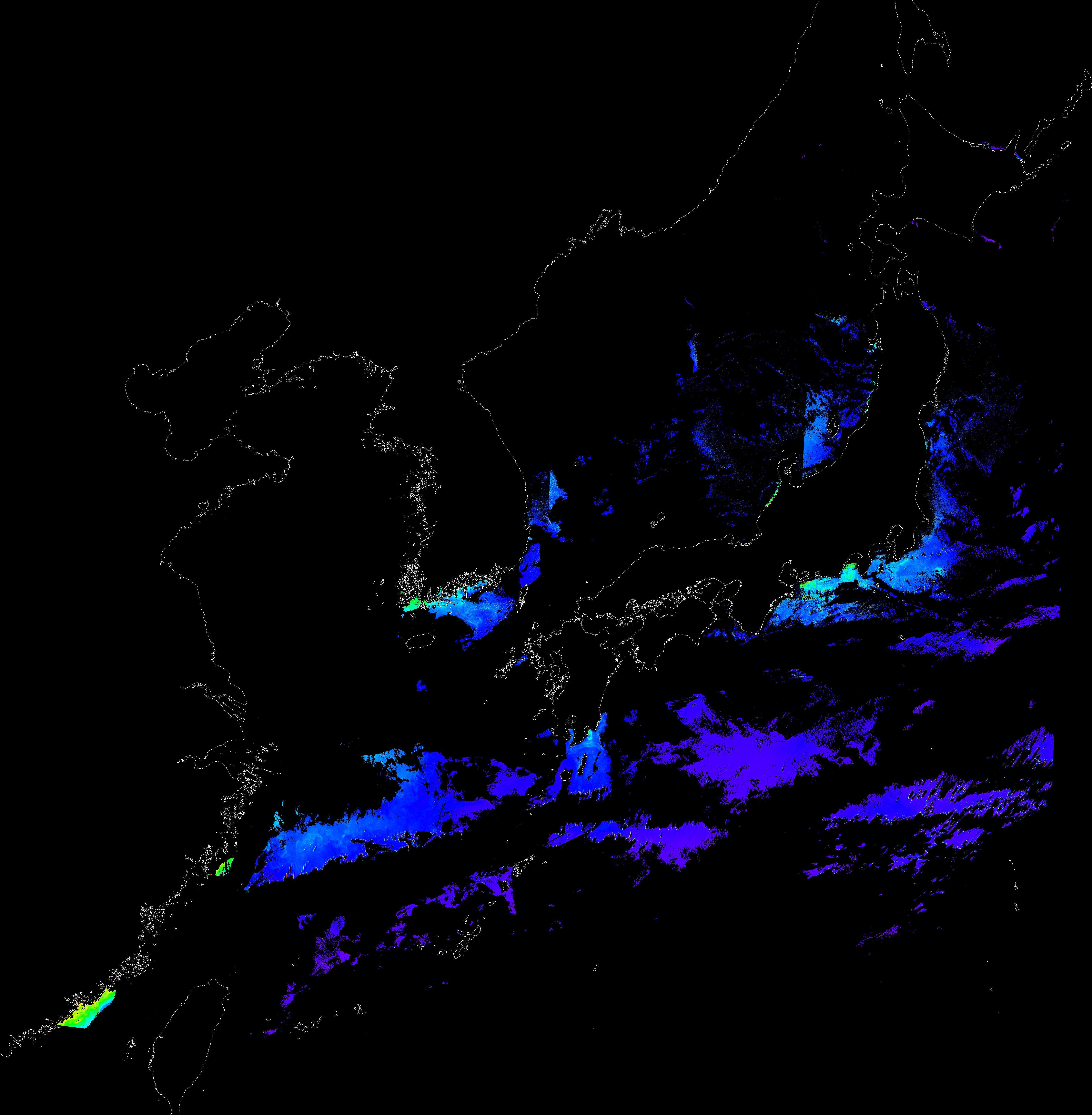 o 2016년 12월 08일 천리안 GOCI 클로로필 a 위성영상입니다.