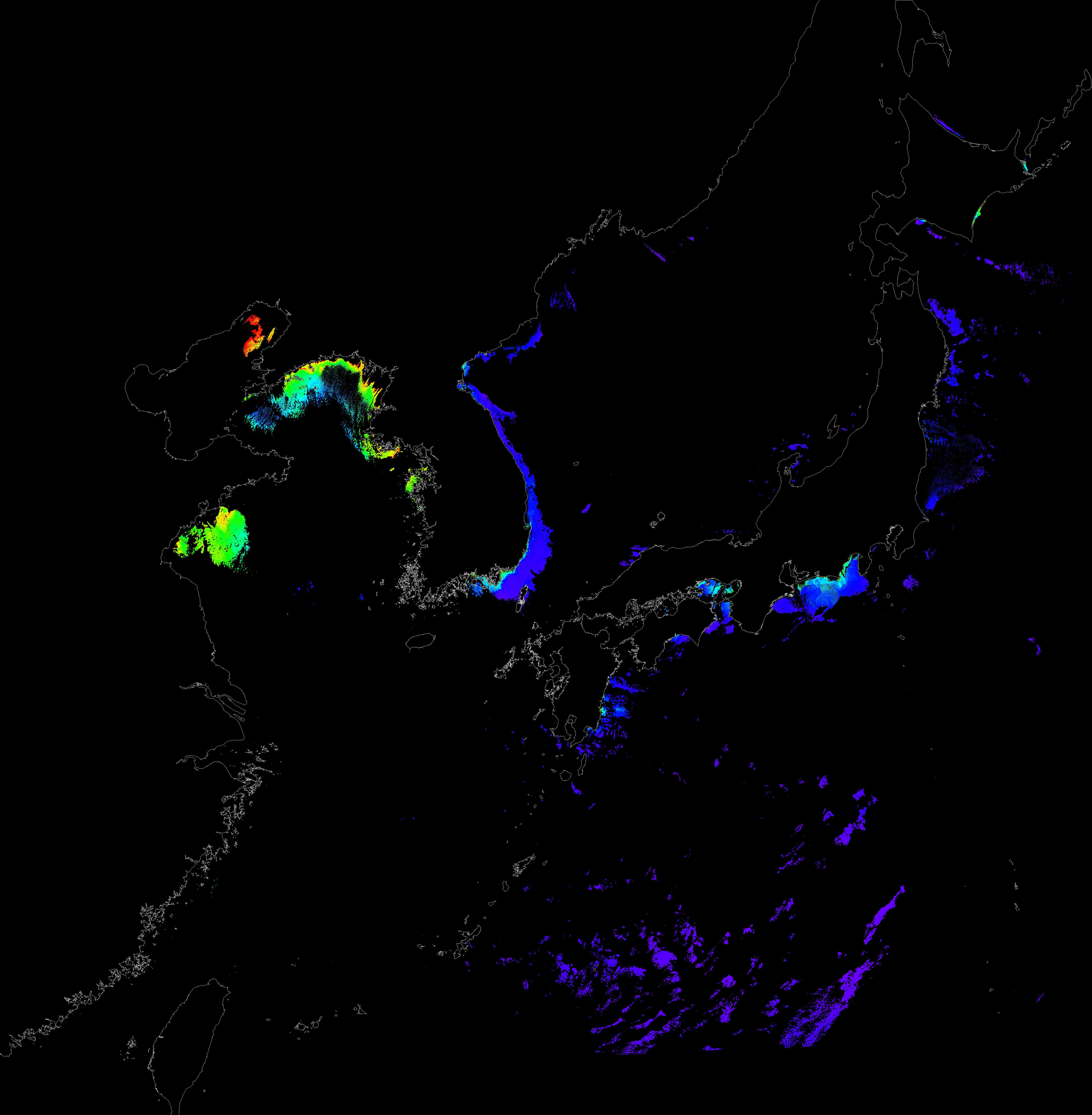 o 2016년 12월 15일 천리안 GOCI 클로로필 a 위성영상입니다.