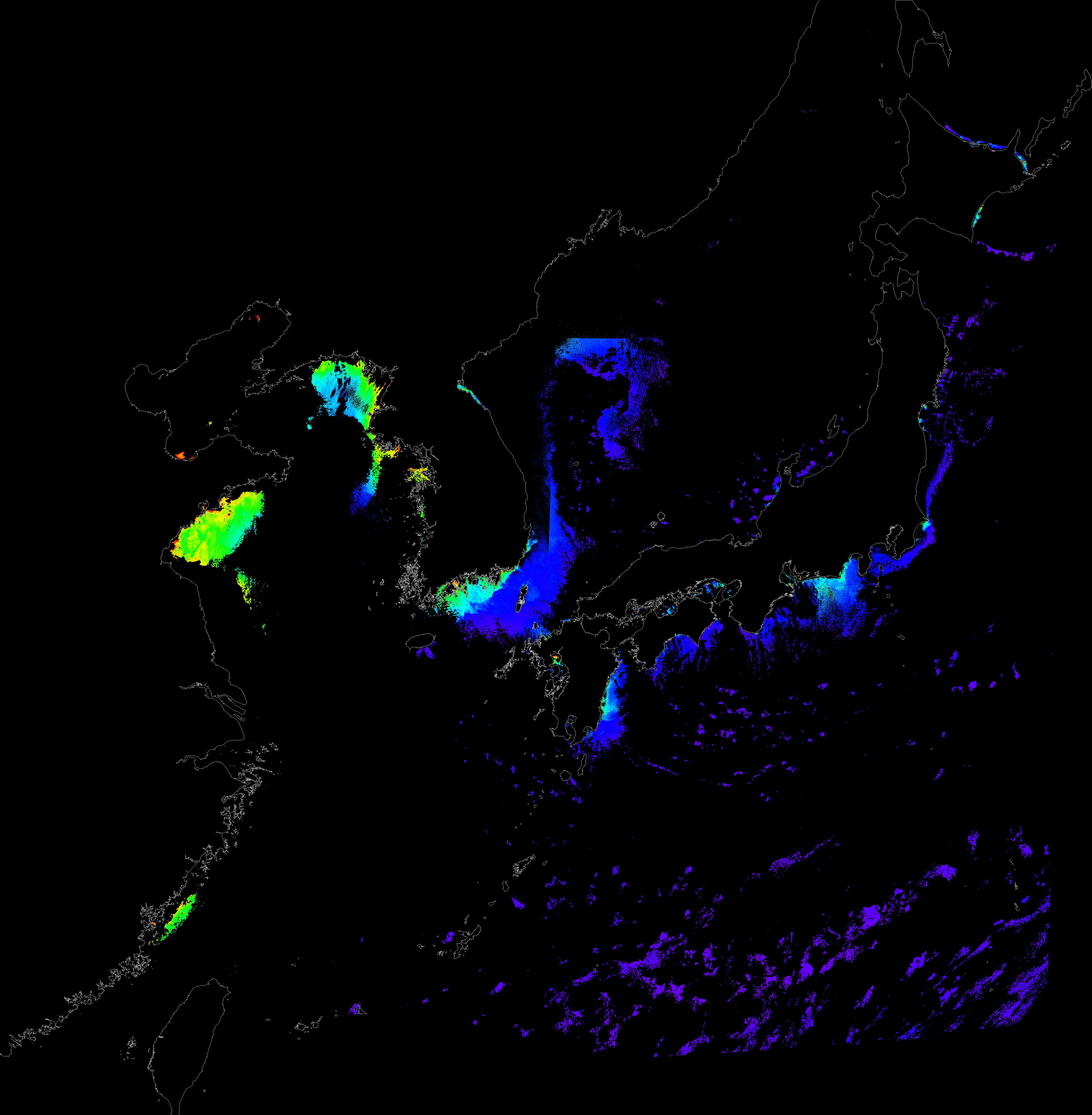 o 2016년 12월 16일 천리안 GOCI 클로로필 a 위성영상입니다.