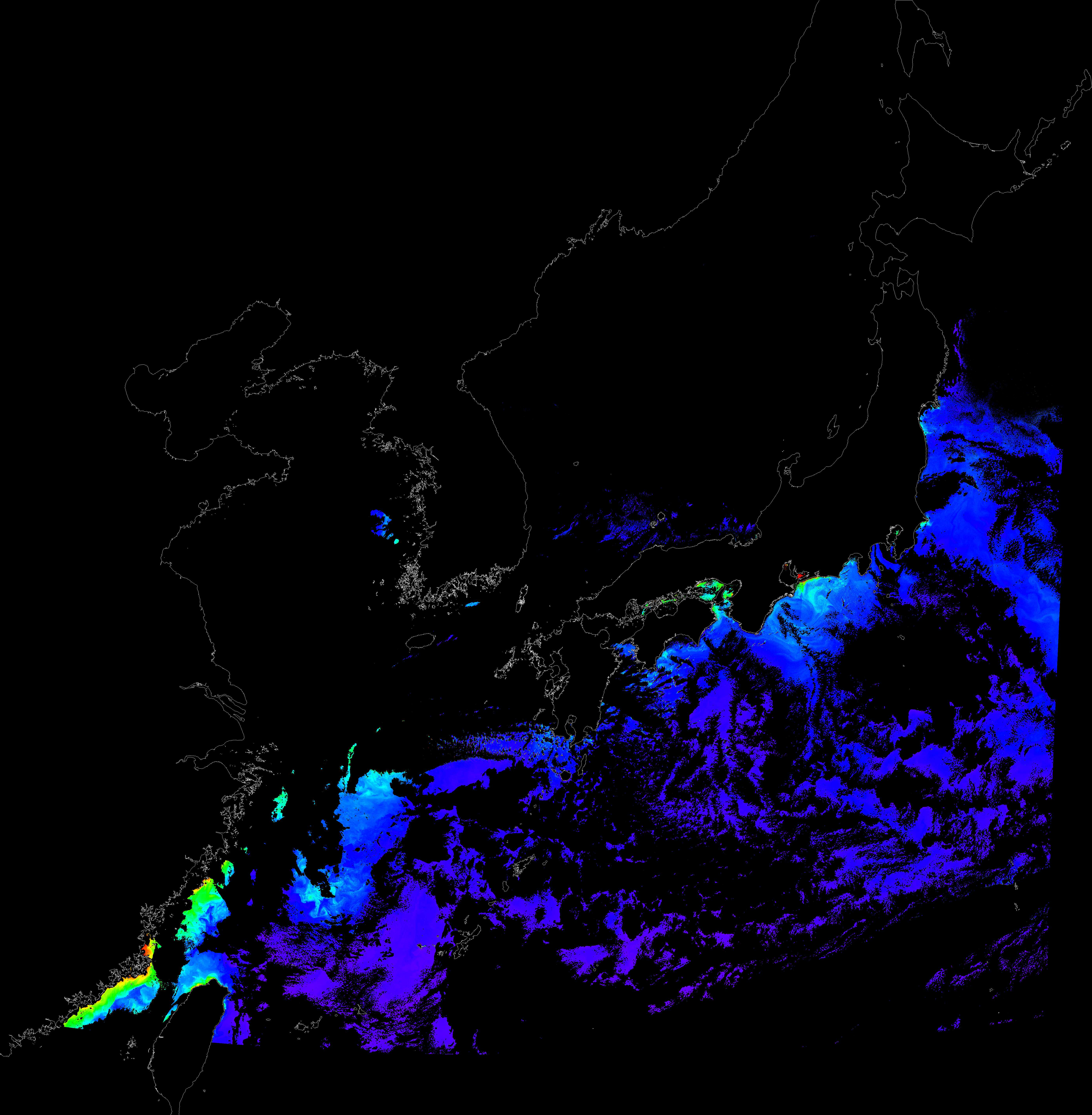 o 2016년 12월 18일 천리안 GOCI 클로로필 a 위성영상입니다.