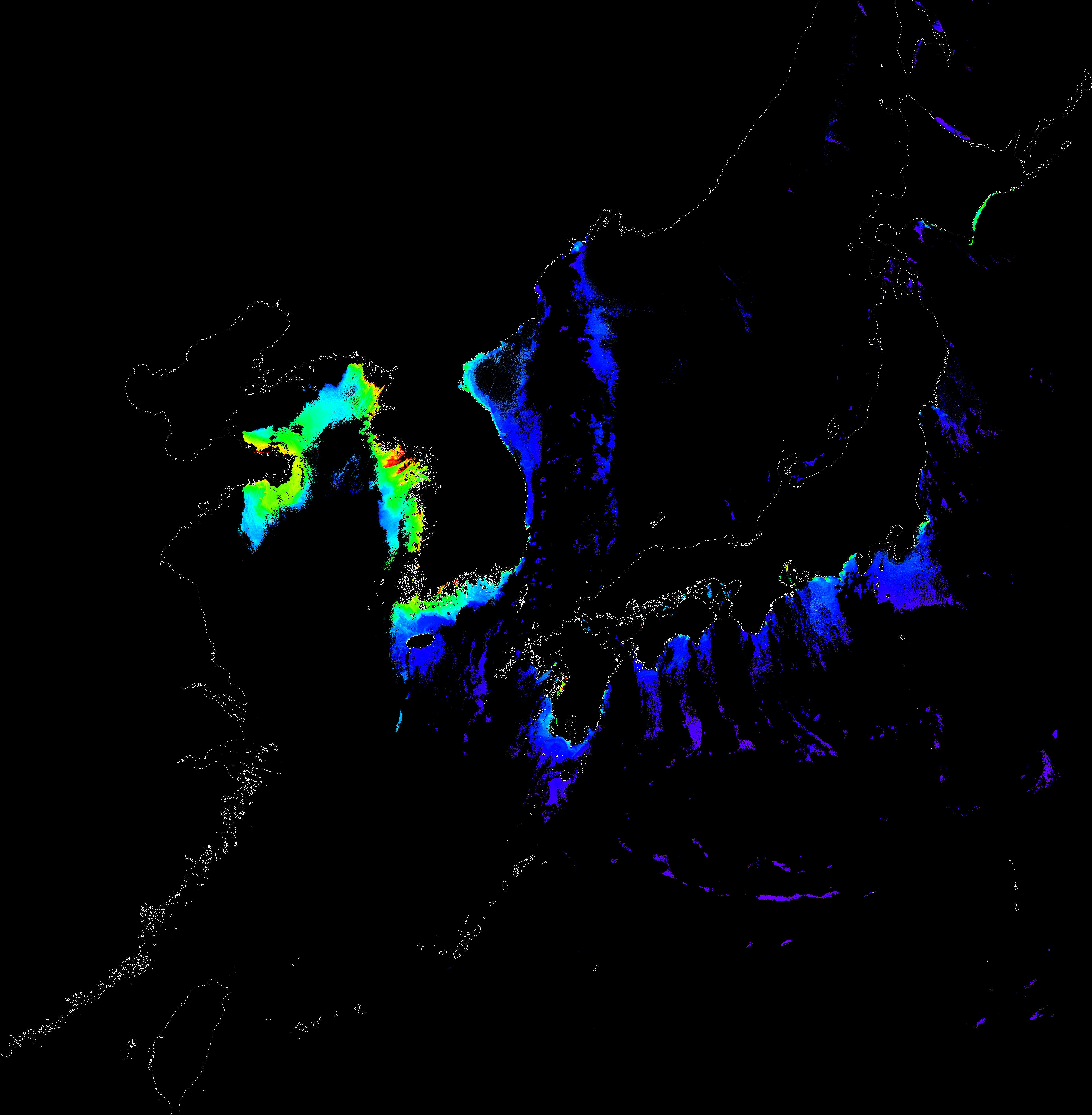o 2016년 12월 28일 천리안 GOCI 클로로필 a 위성영상입니다.