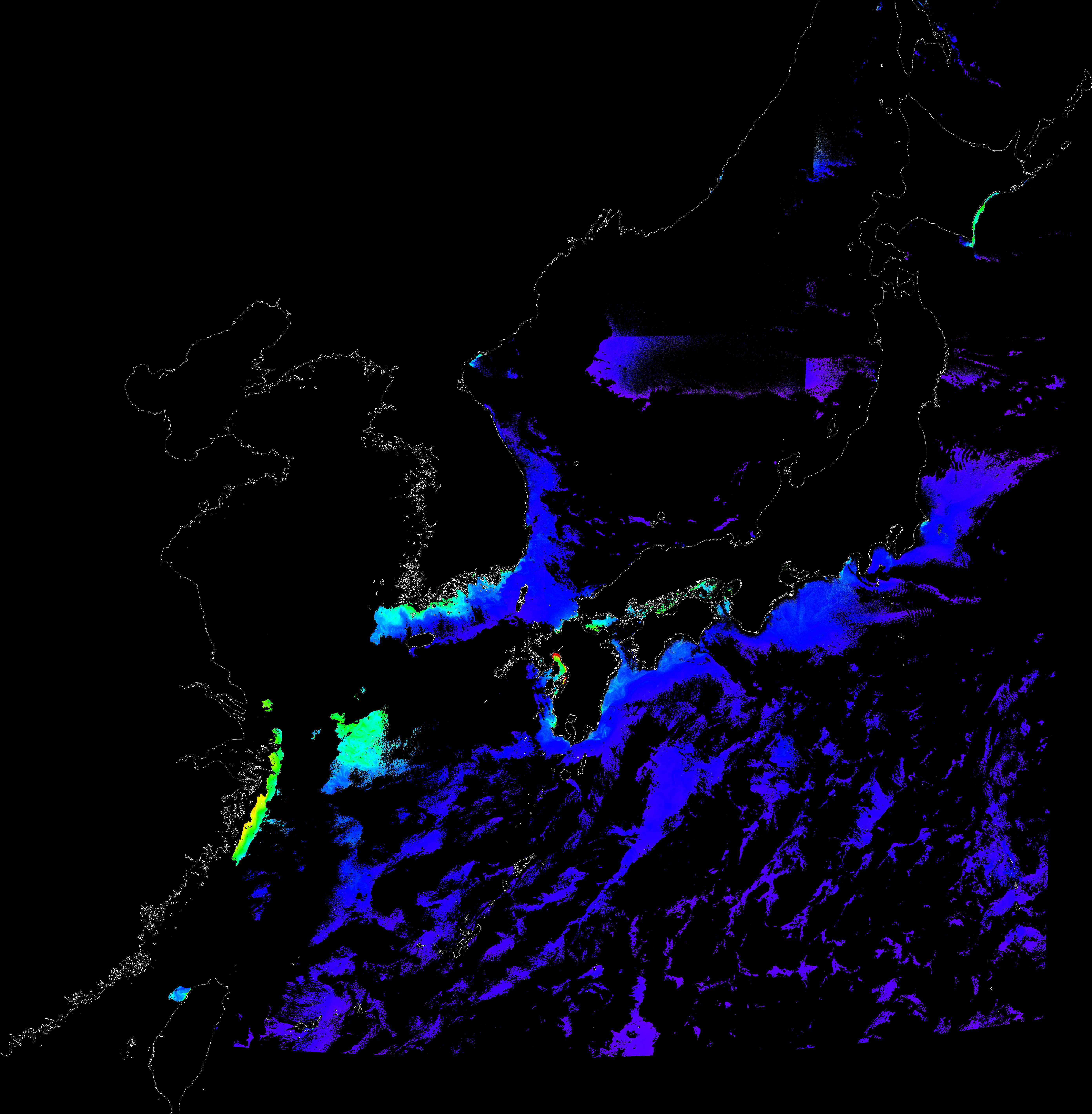 o 2016년 12월 31일 천리안 GOCI 클로로필 a 위성영상입니다.