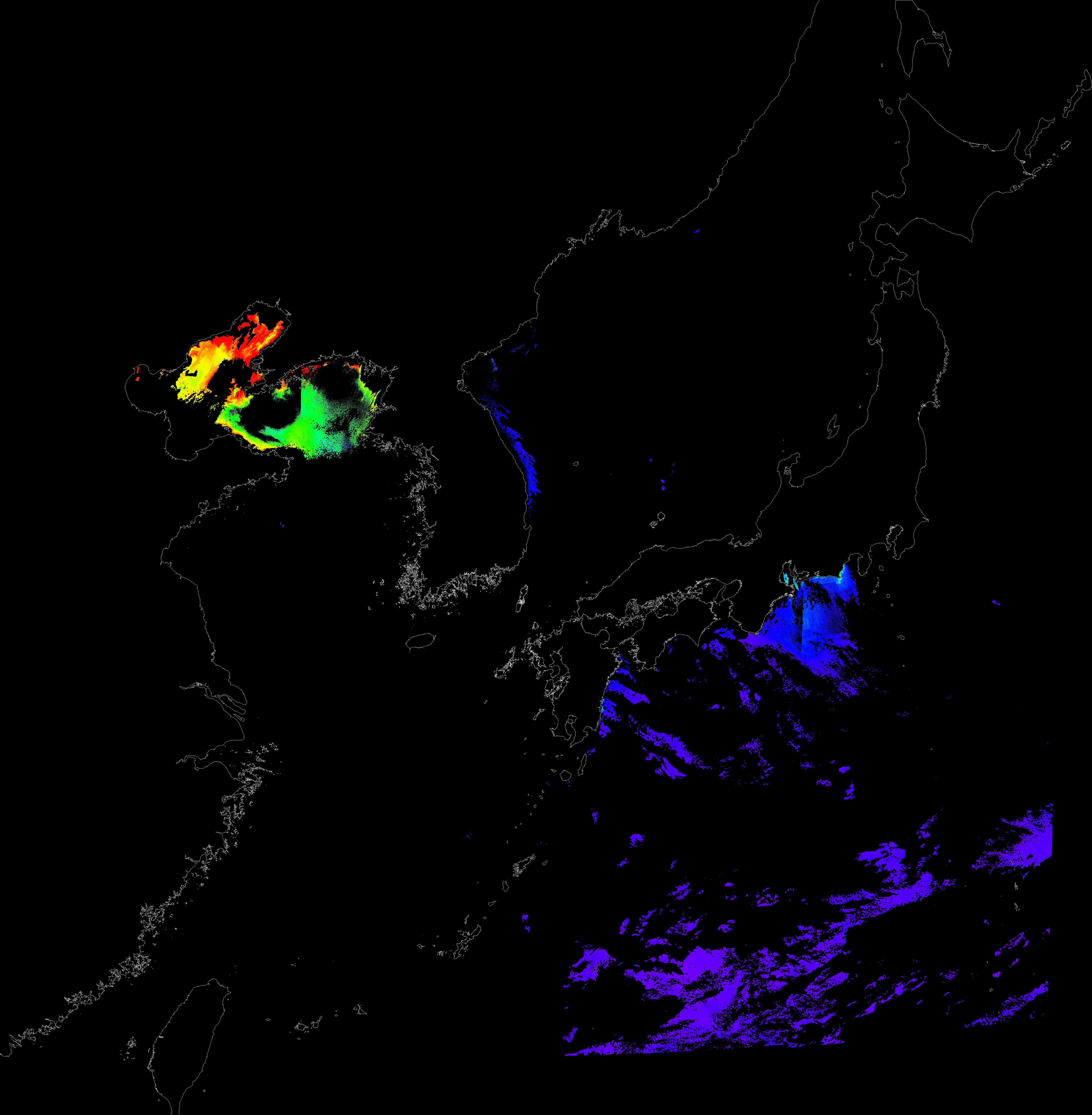 o 2017년 01월 09일 천리안 GOCI 클로로필 a 위성영상입니다.