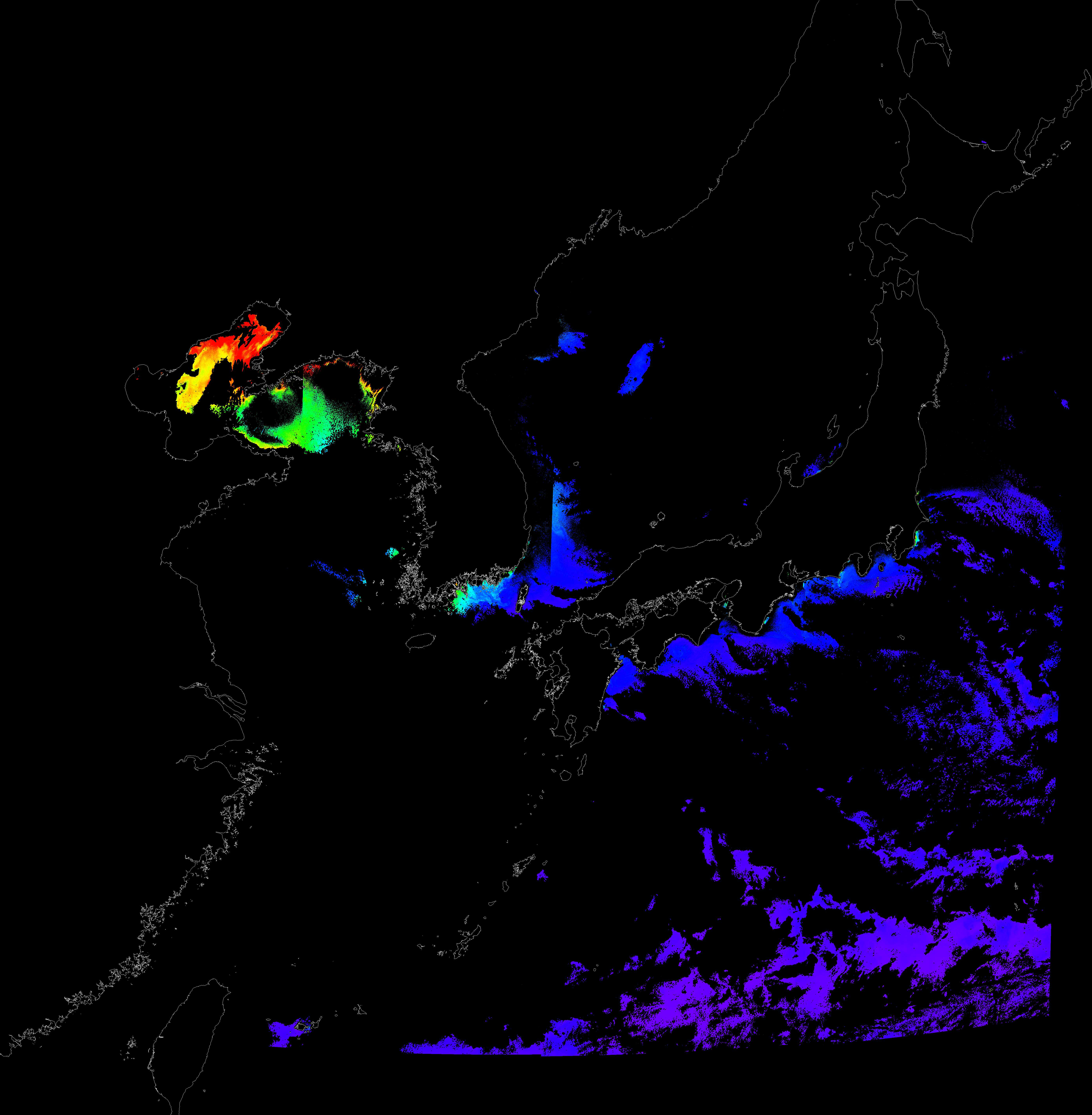o 2017년 01월 10일 천리안 GOCI 클로로필 a 위성영상입니다.