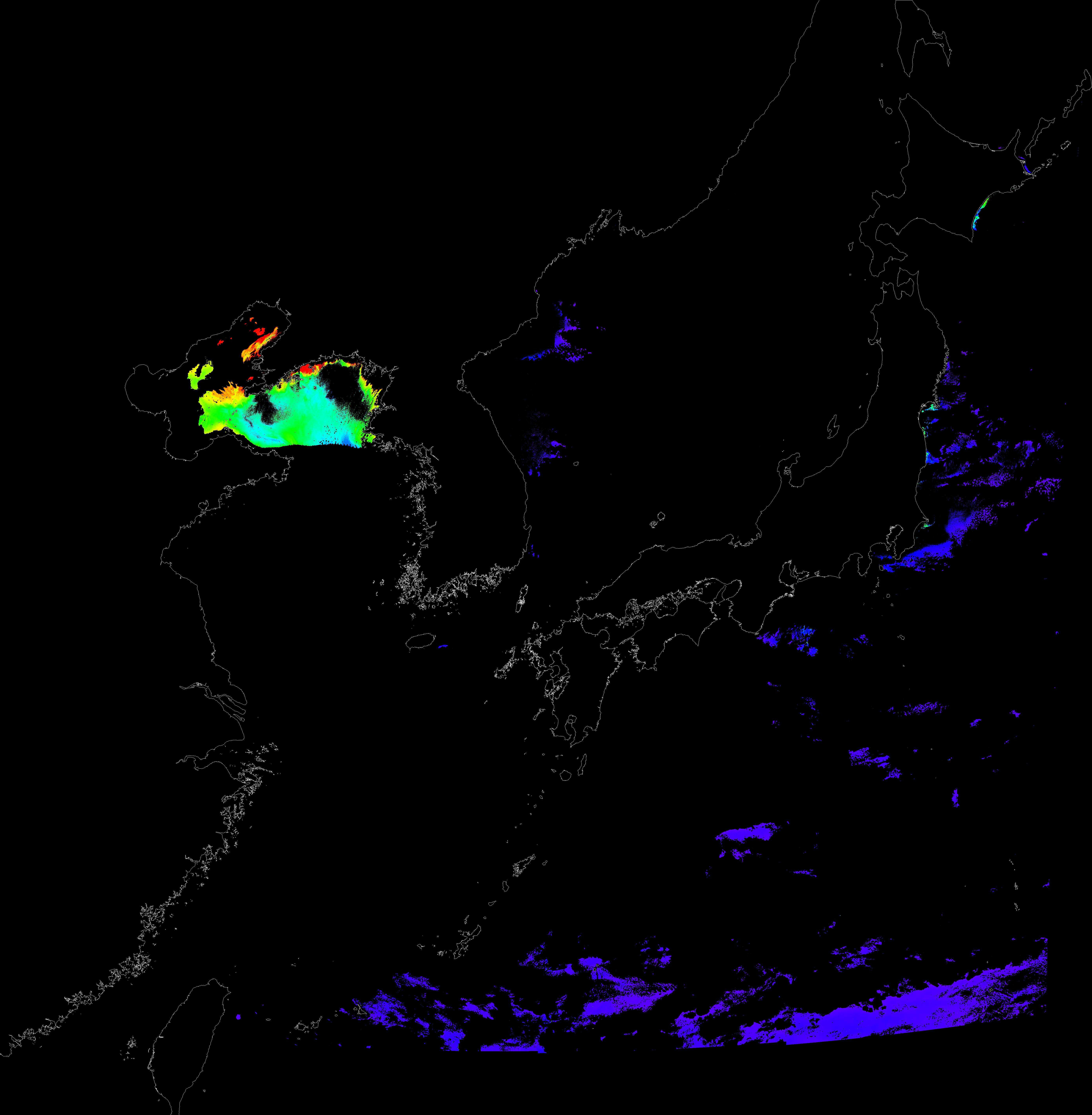 o 2017년 01월 12 천리안 GOCI 클로로필 a 위성영상입니다.