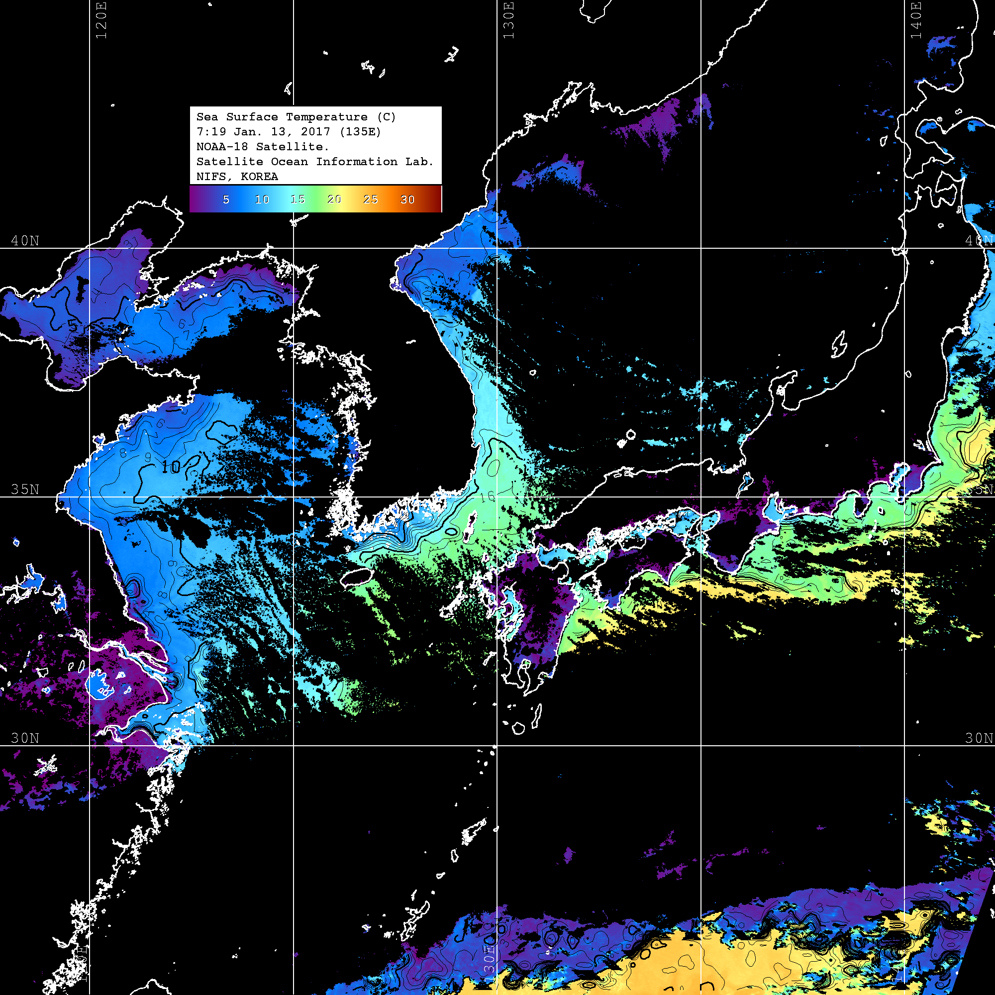o 2017 년 01 월 13 일 NOAA 위성영상입니다.