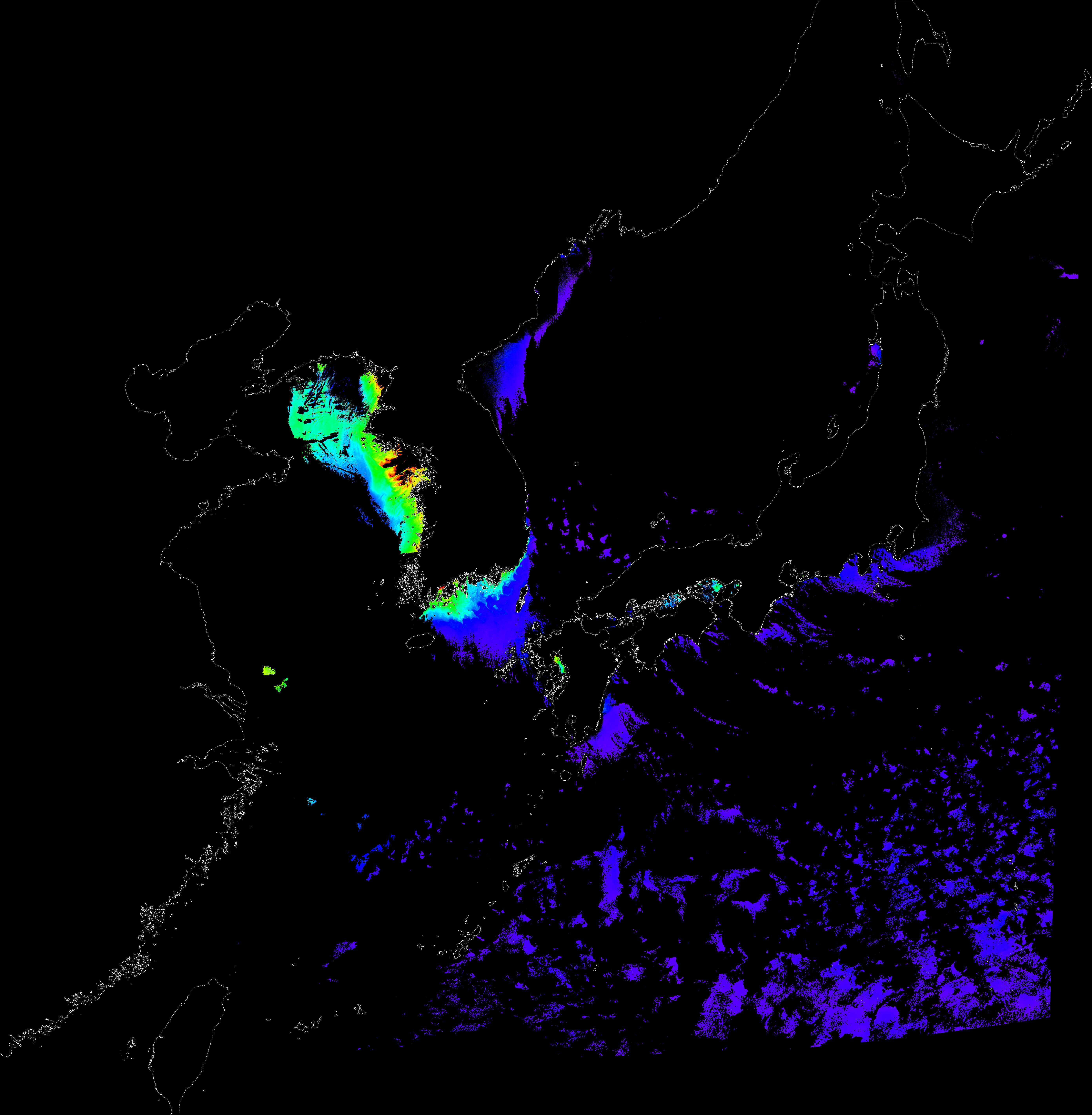 o 2017년 01월 16일 천리안 GOCI 클로로필 a 위성영상입니다.