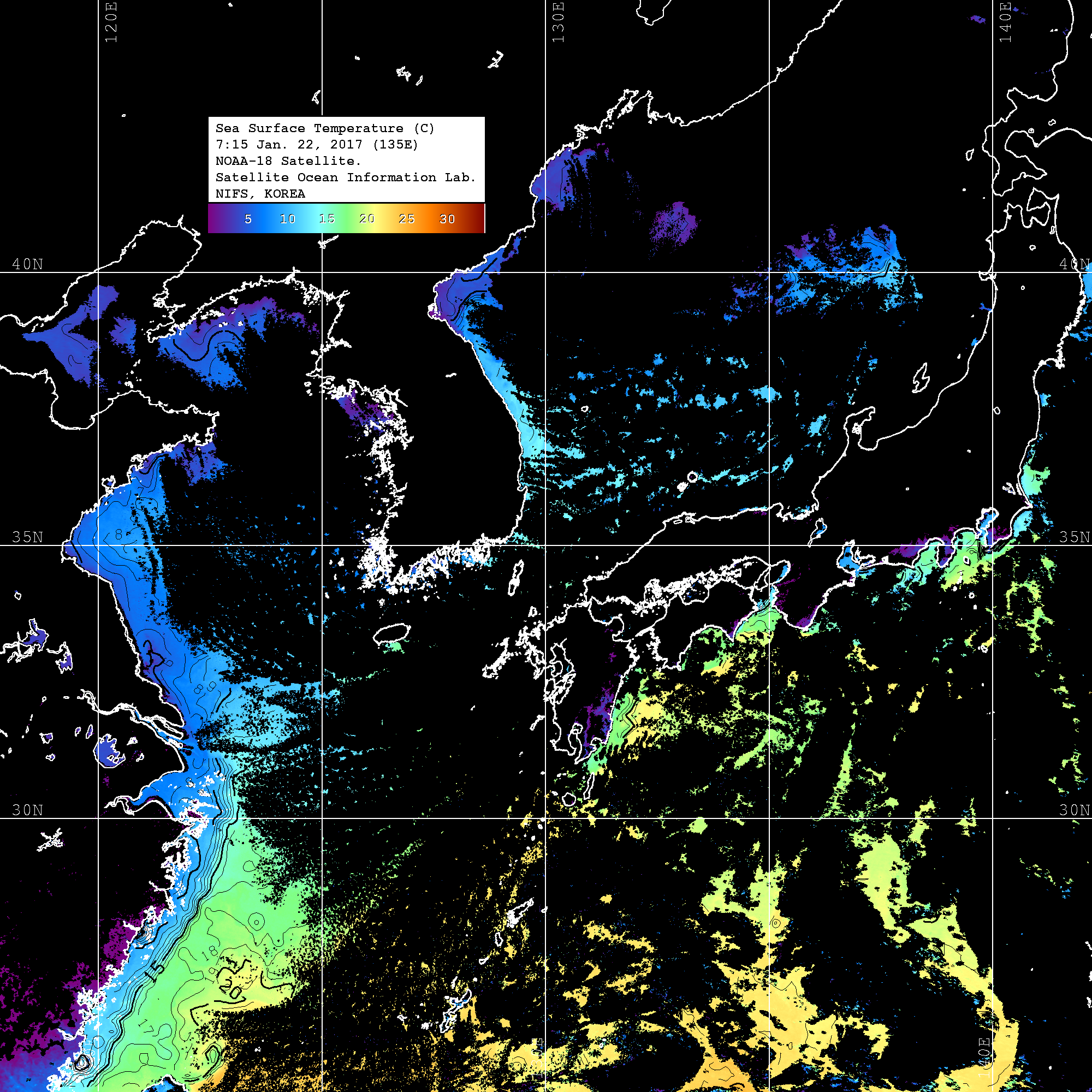 o 2017 년 01 월 22 일 NOAA 위성영상입니다.