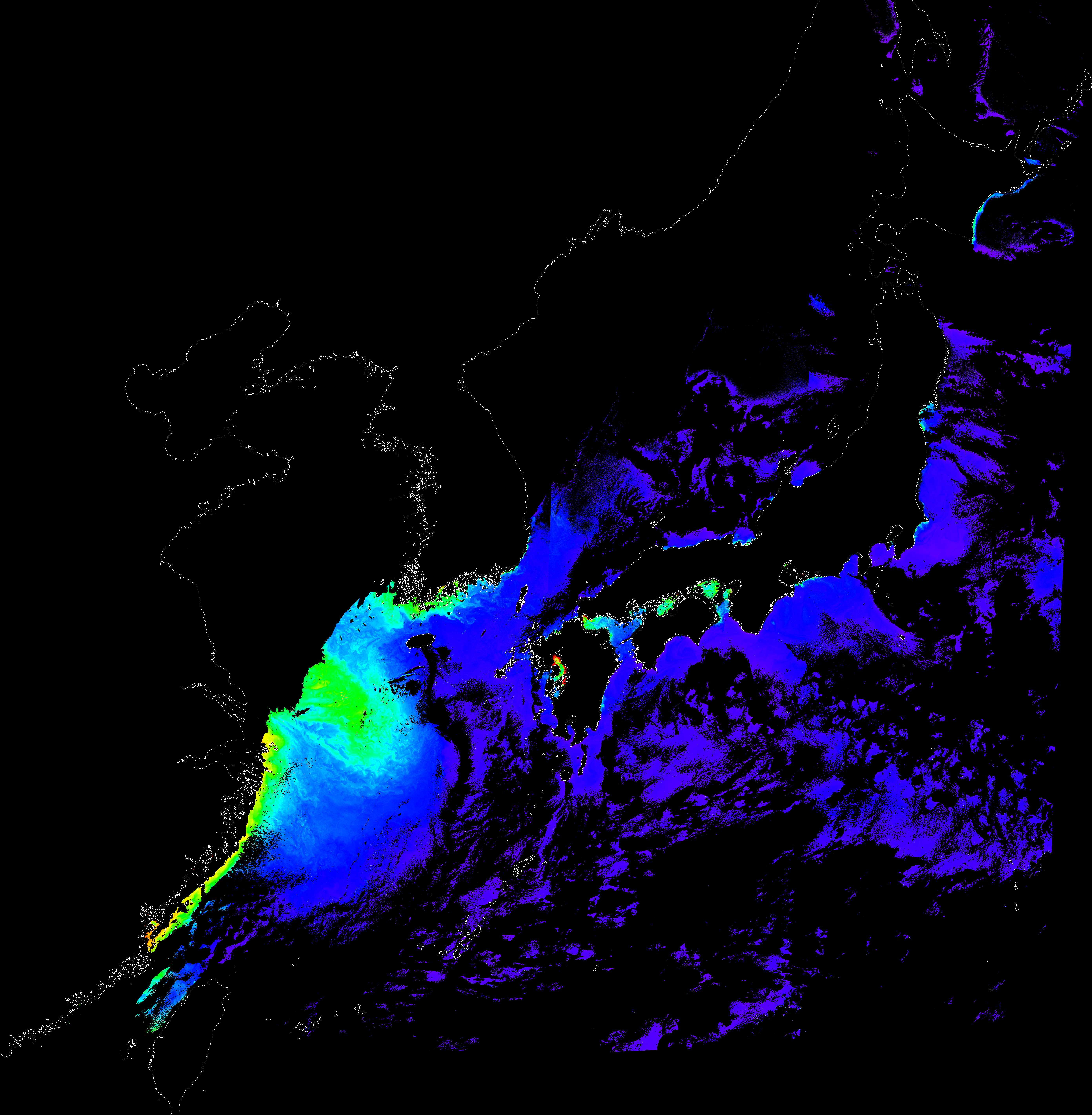 o 2017년 01월 26일 천리안 GOCI 클로로필 a 위성영상입니다.