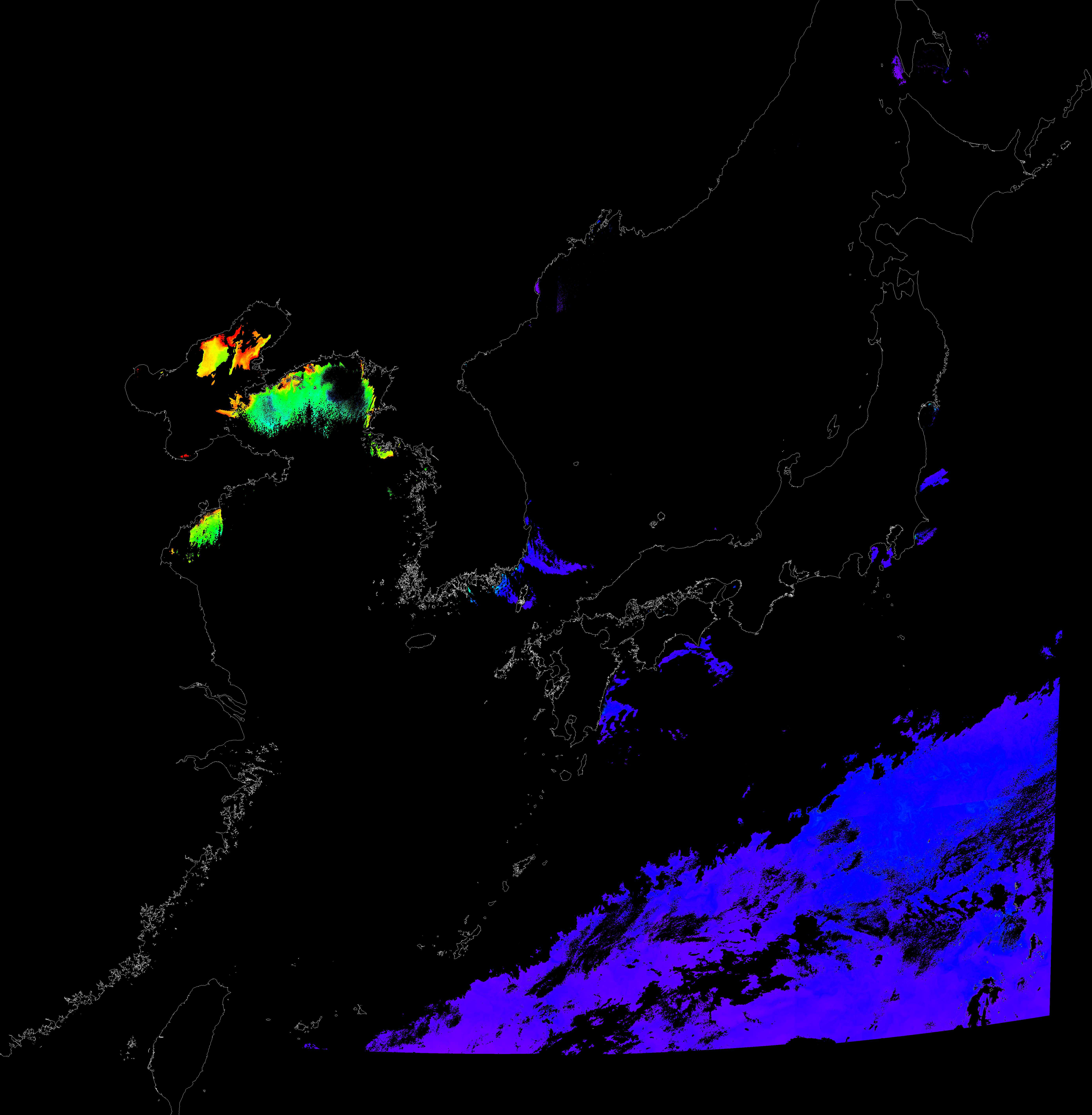 o 2017년 01월 30일 천리안 GOCI 클로로필 a 위성영상입니다.