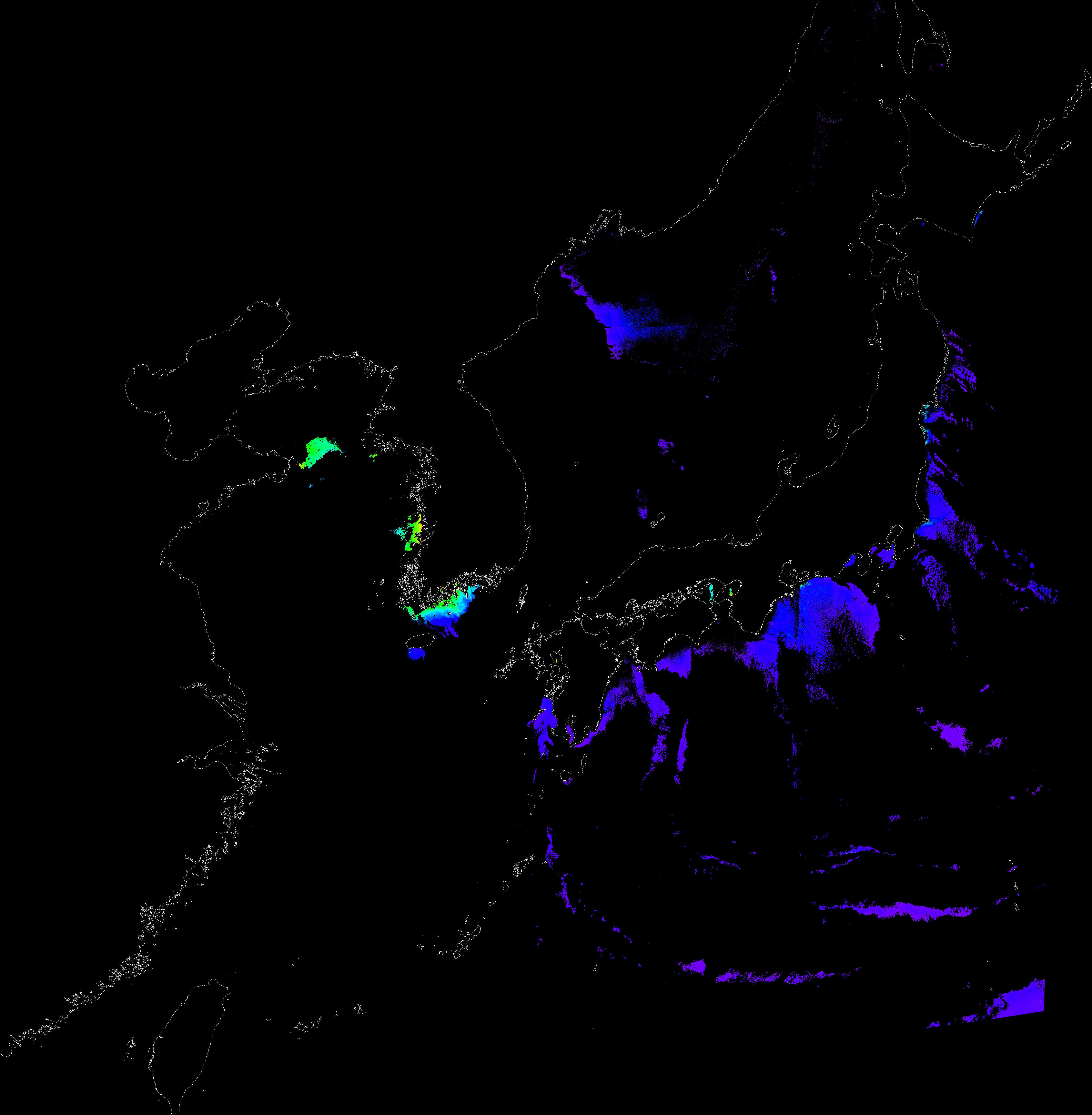 o 2017년 01월 30일 천리안 GOCI 클로로필 a 위성영상입니다.