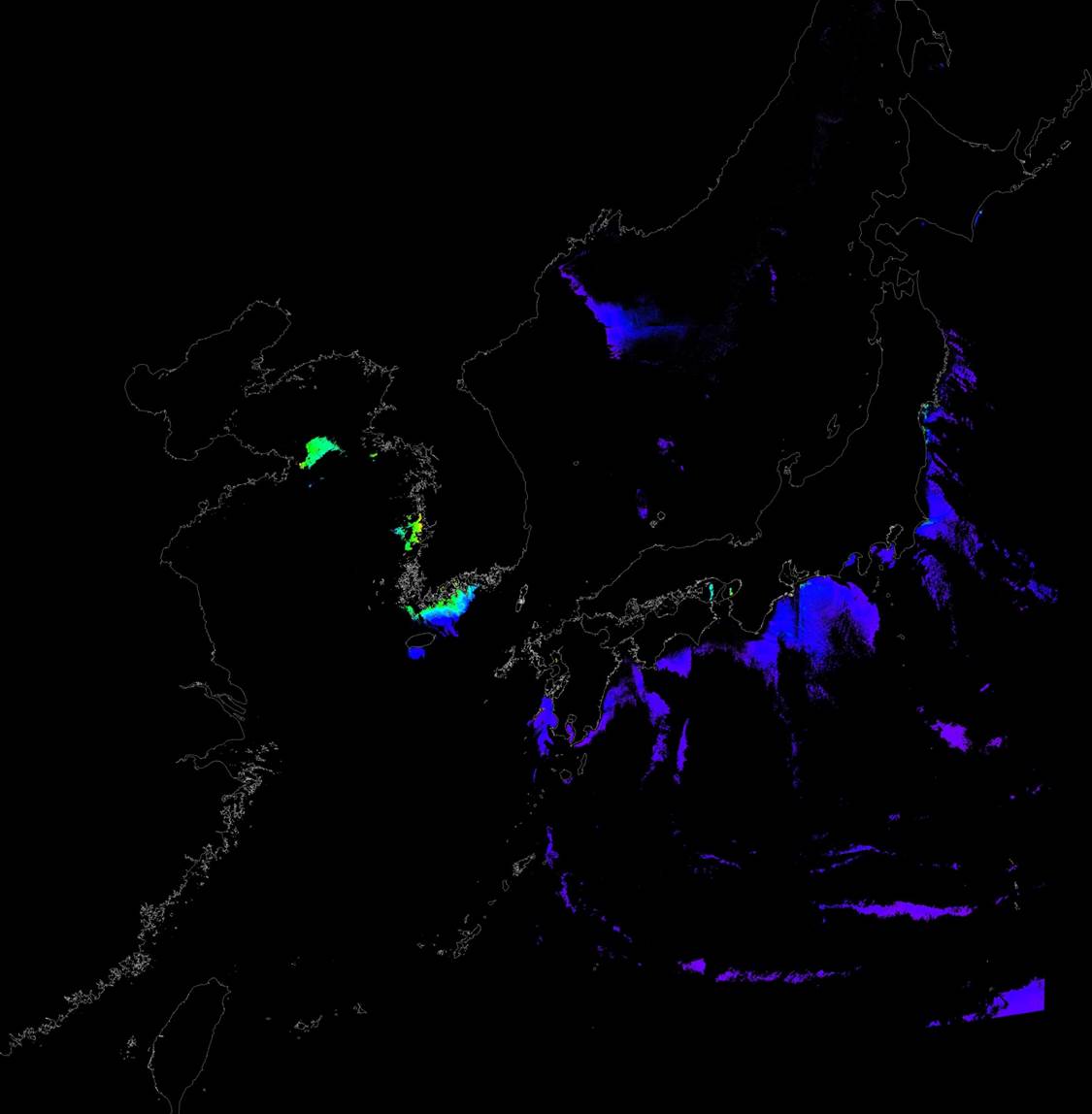 o 2017년 01월 31일 천리안 GOCI 클로로필 a 위성영상입니다.