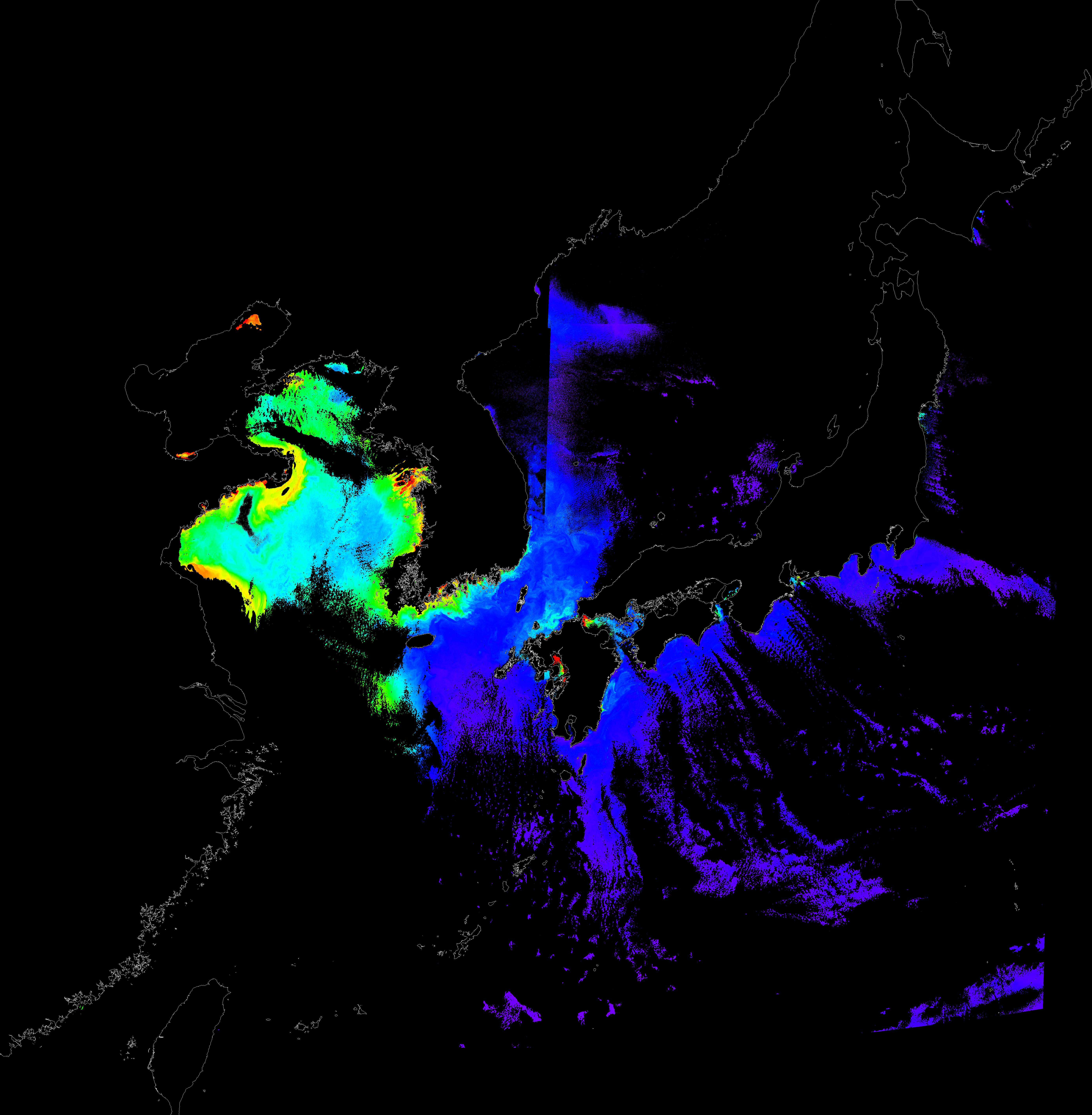 o 2017년 02월 02일 천리안 GOCI 클로로필 a 위성영상입니다.