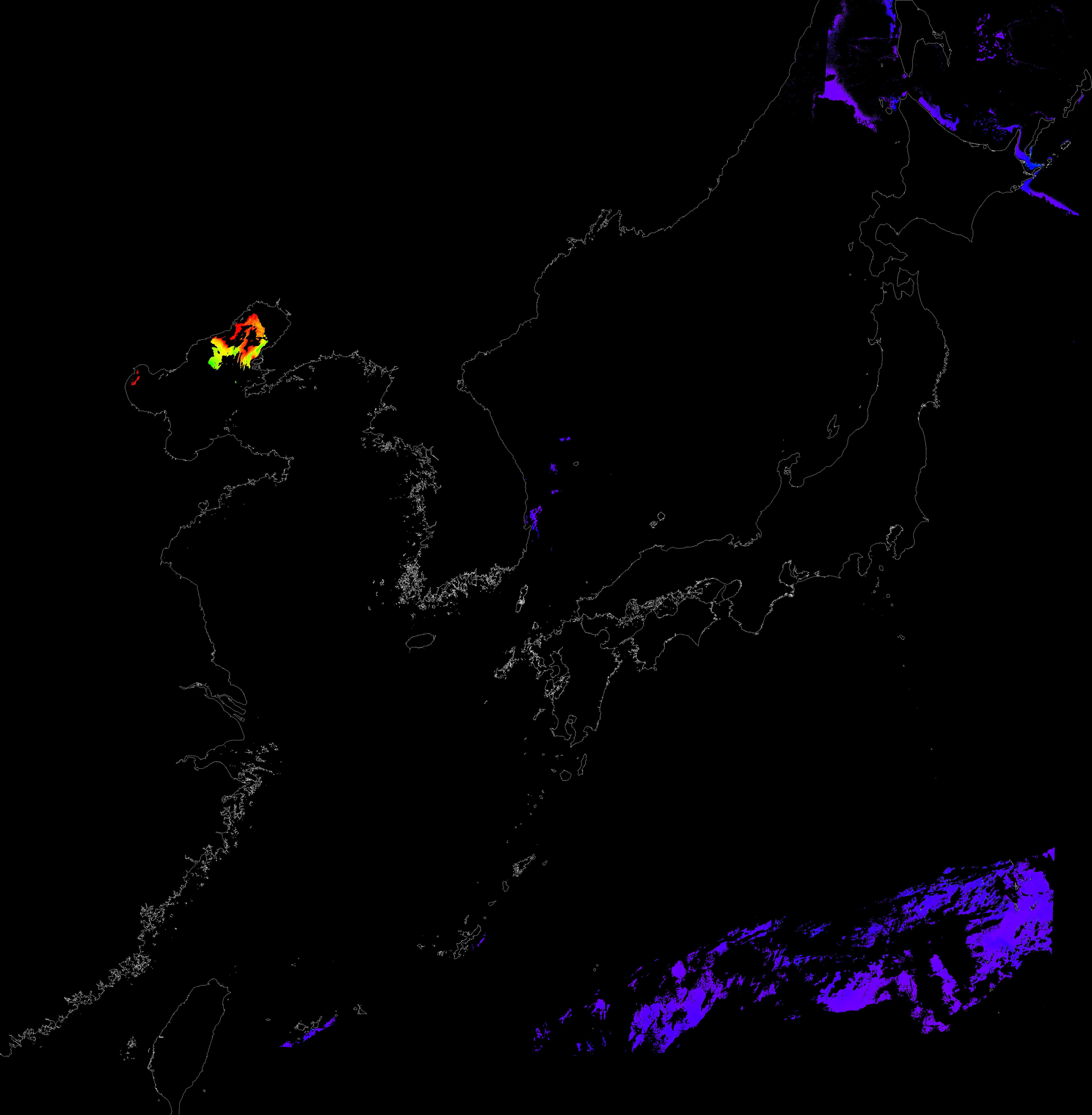 o 2017년 02월 05일 천리안 GOCI 클로로필 a 위성영상입니다.