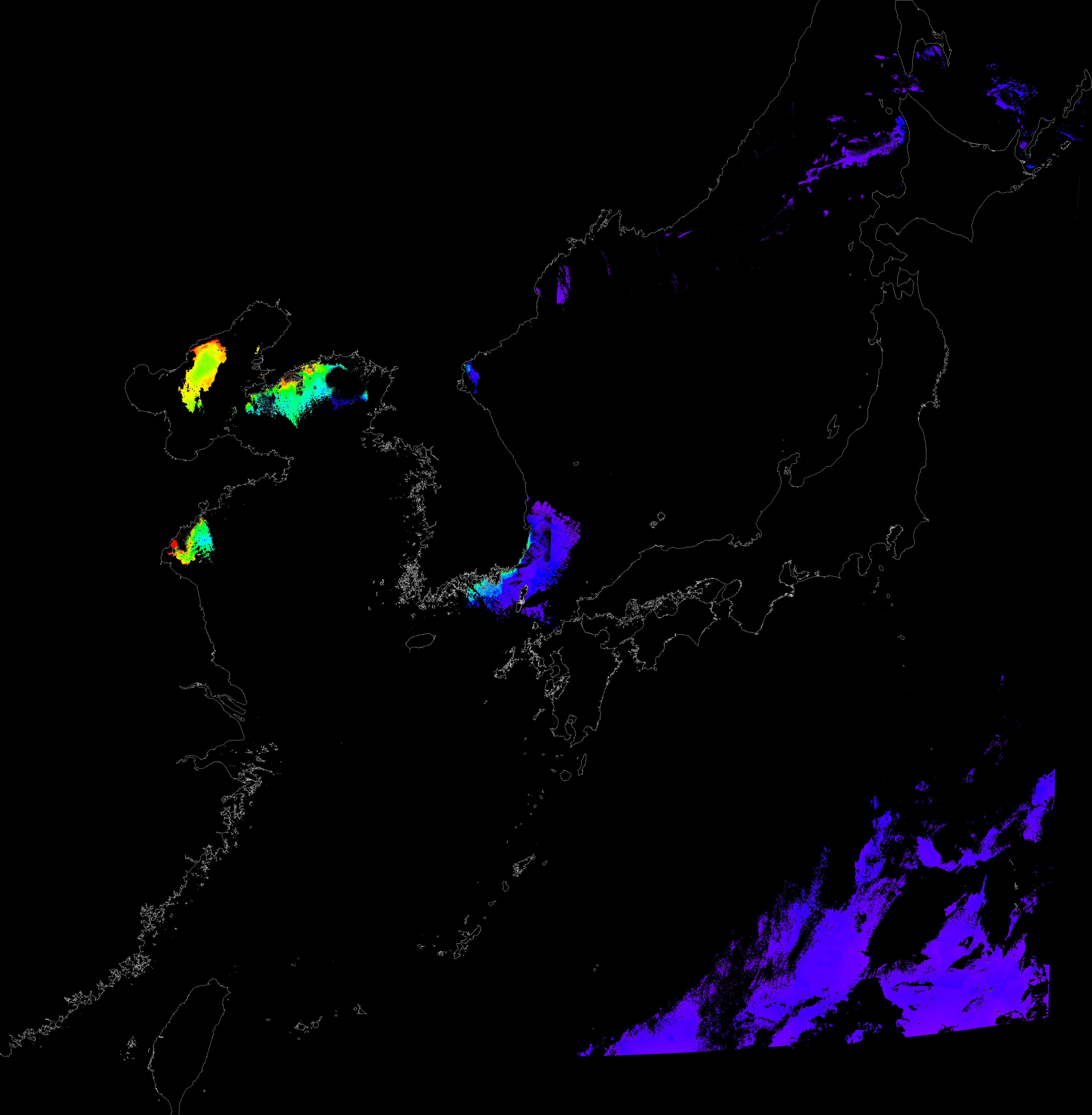 o 2017년 02월 09일 천리안 GOCI 클로로필 a 위성영상입니다.