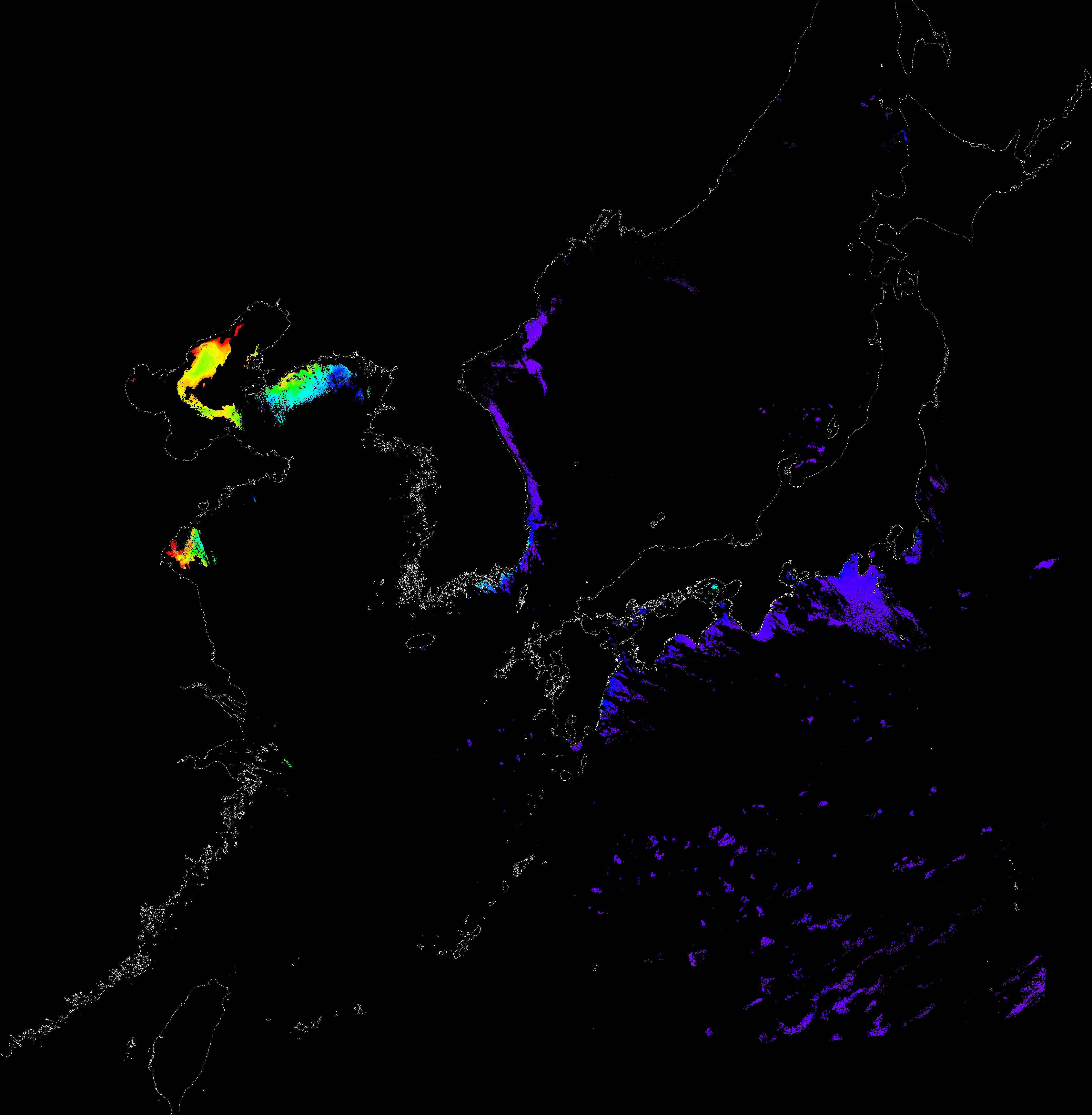 o 2017년 02월 10일 천리안 GOCI 클로로필 a 위성영상입니다.
