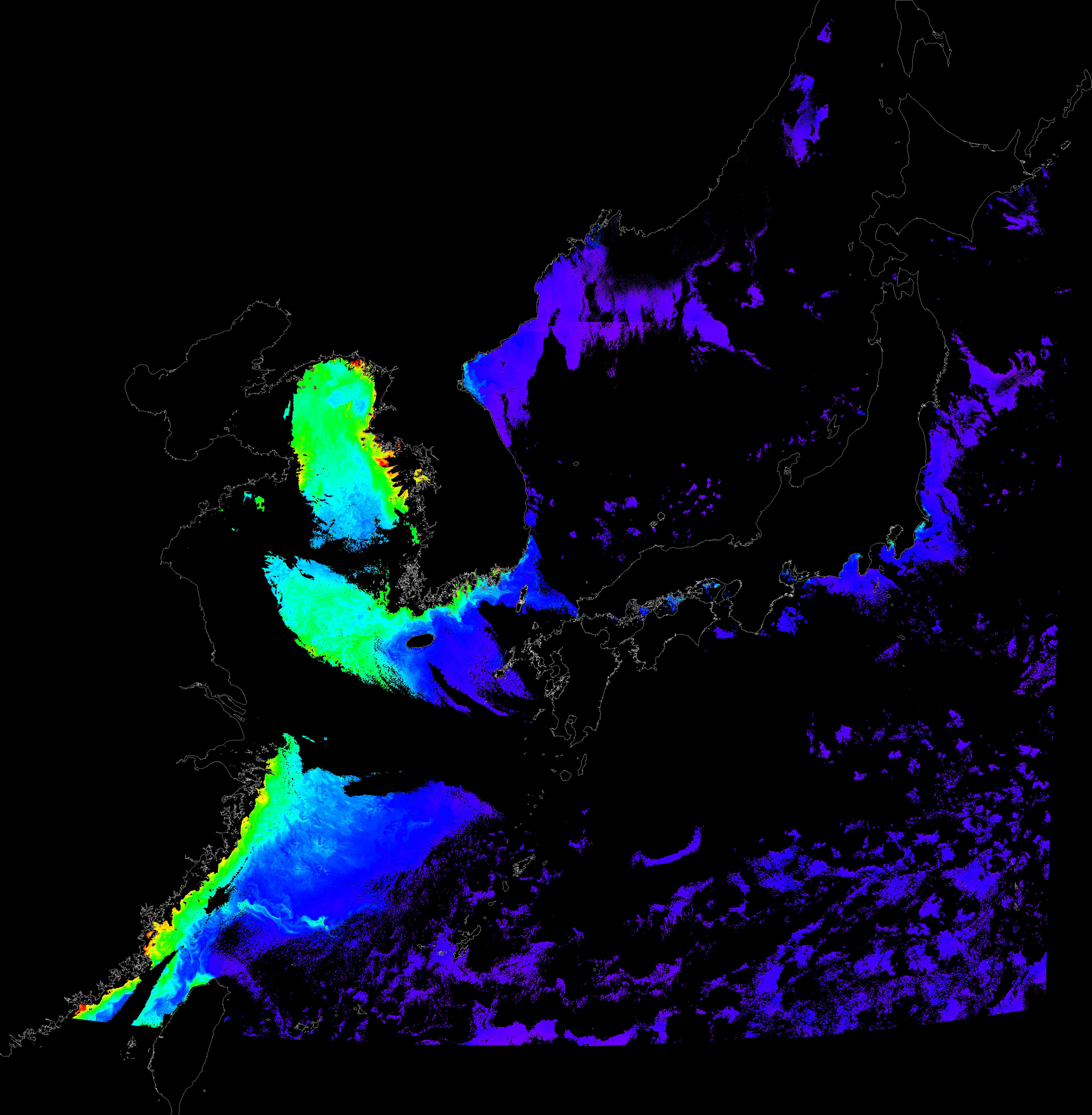 o 2017년 02월 14일 천리안 GOCI 클로로필 a 위성영상입니다. [ GOCI : Geostationary Ocean Color Imager ] o 농도분포는 하단 범례를 참고하시기 바랍니다. o 검은색은 구름을 나타냅니다. o 그림을 클릭하시면 크게 보실 수 있습니다.
