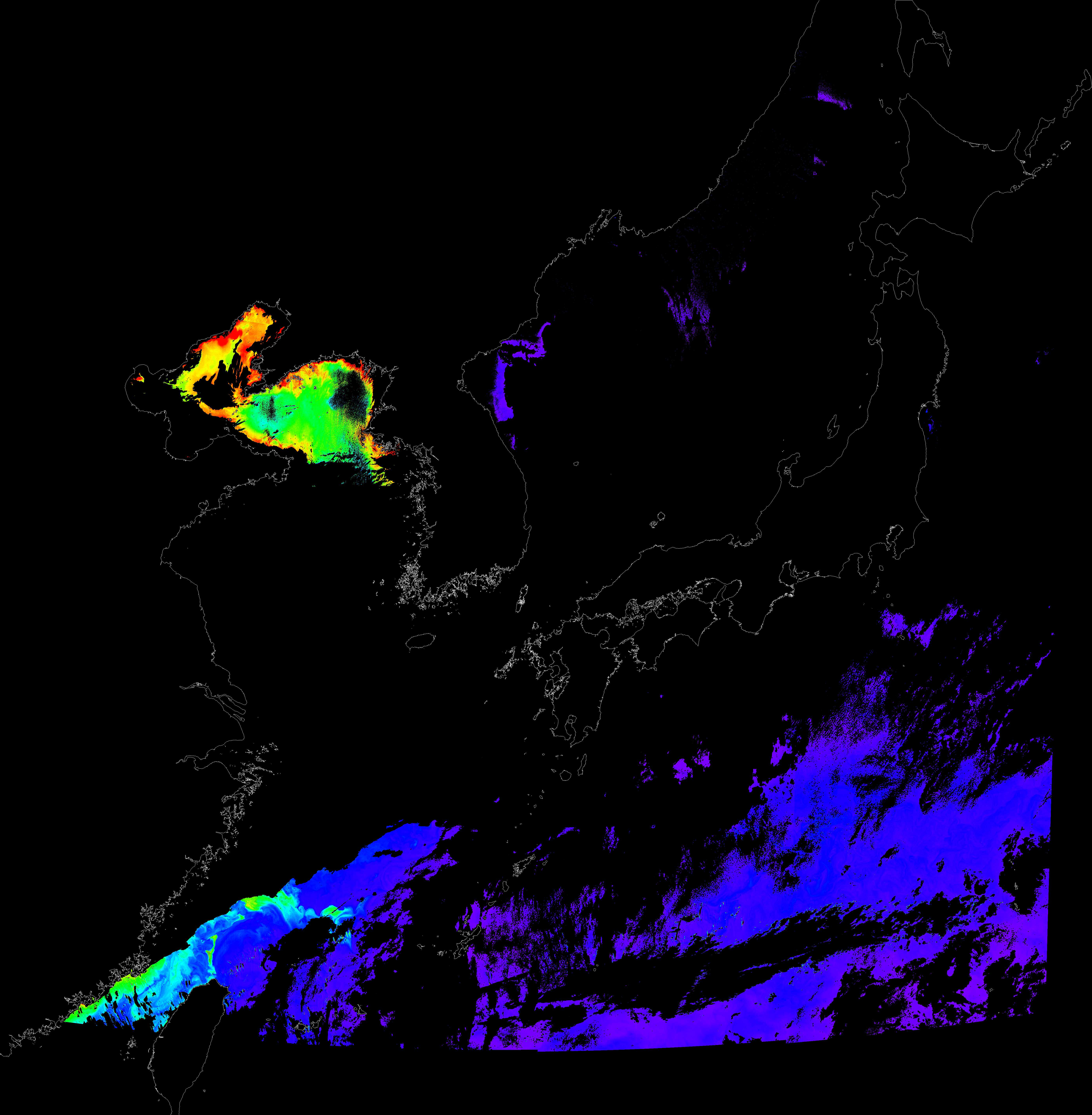 o 2017년 02월 17일 천리안 GOCI 클로로필 a 위성영상입니다.[ GOCI : Geostationary Ocean Color Imager ]o 농도분포는 하단 범례를 참고하시기 바랍니다.o 검은색은 구름을 나타냅니다.o 그림을 클릭하시면 크게 보실 수 있습니다.