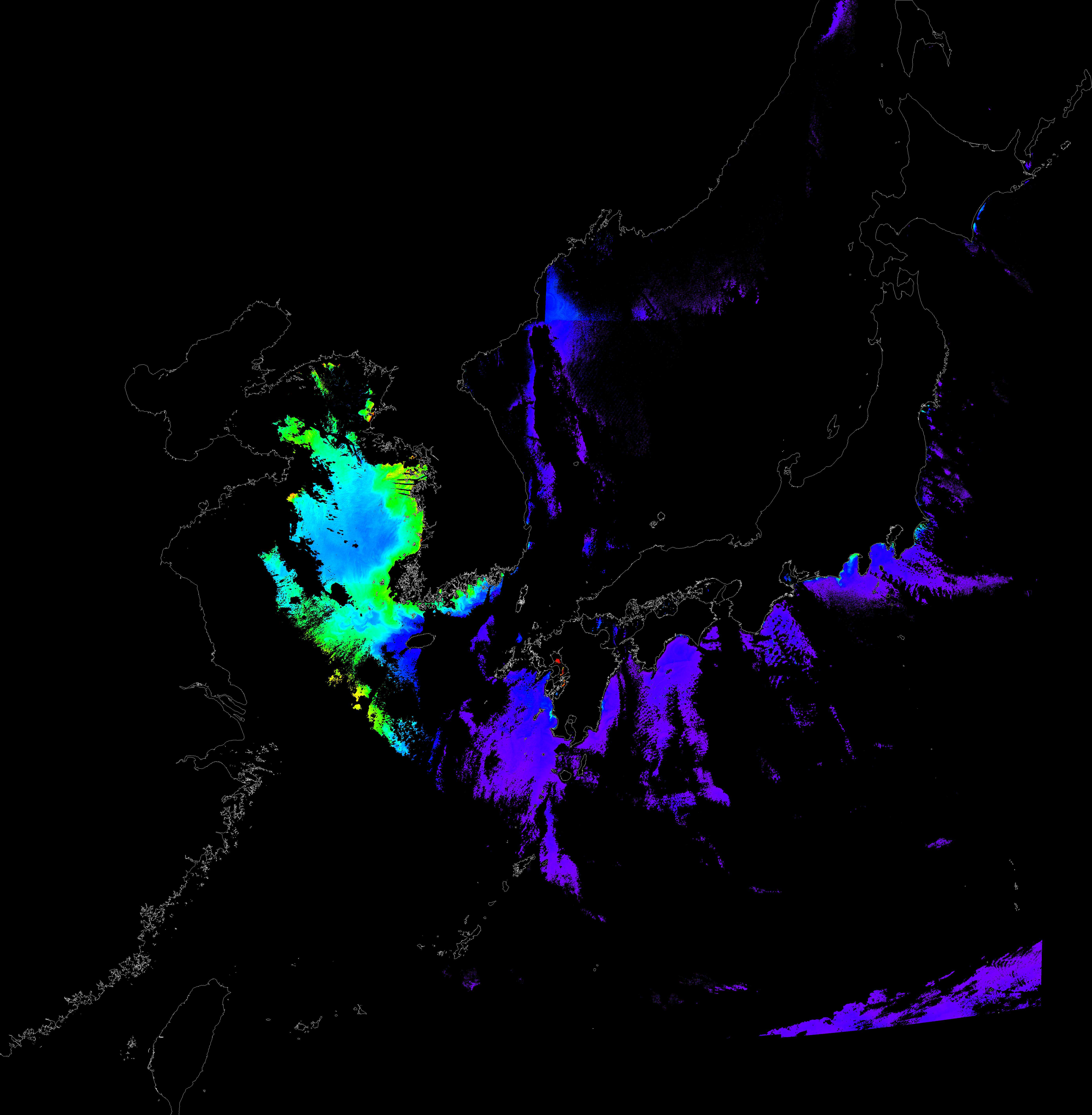 o 2017년 02월 21일 천리안 GOCI 클로로필 a 위성영상입니다.