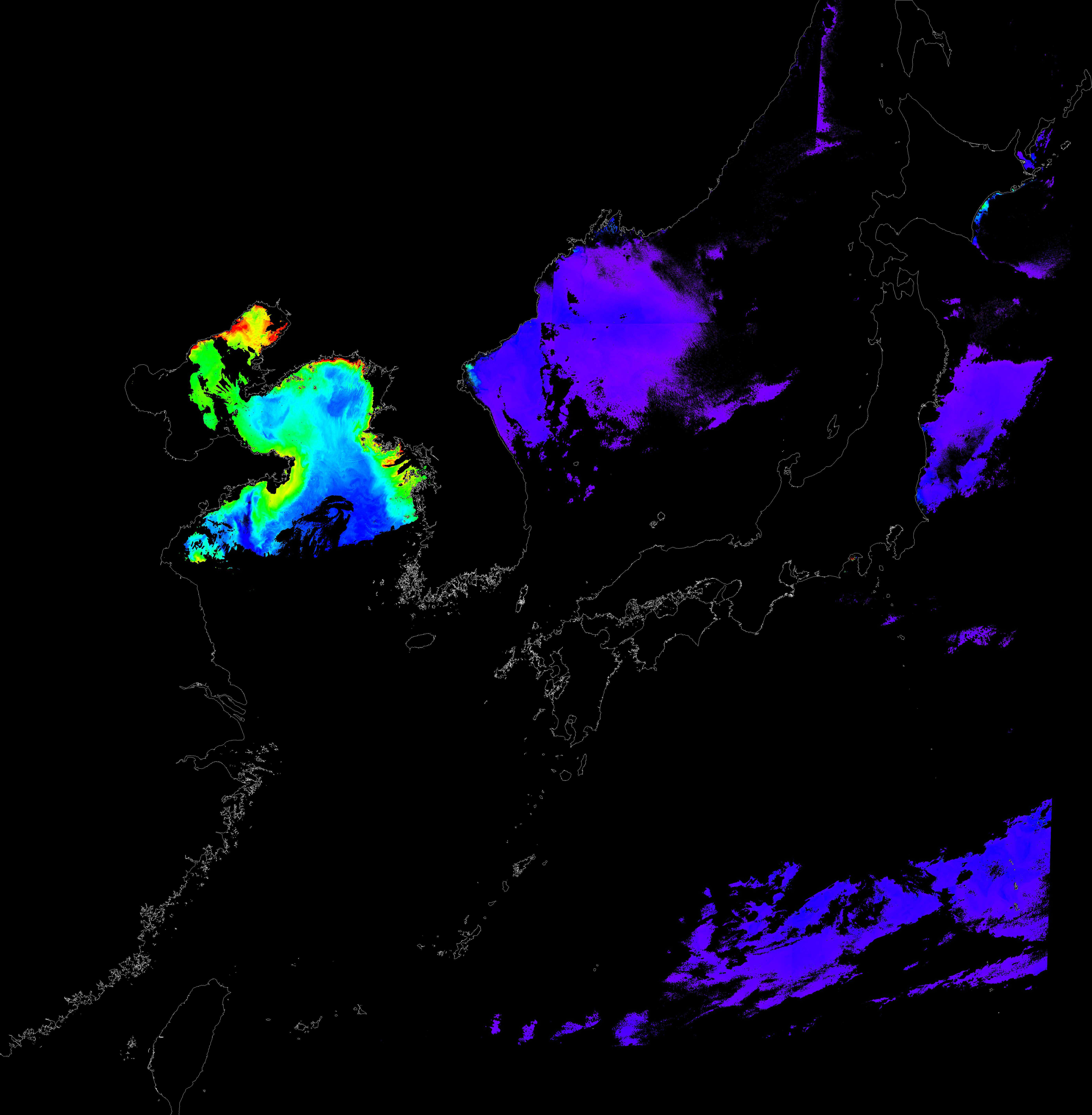 o 2017년 02월 26일 천리안 GOCI 클로로필 a 위성영상입니다.