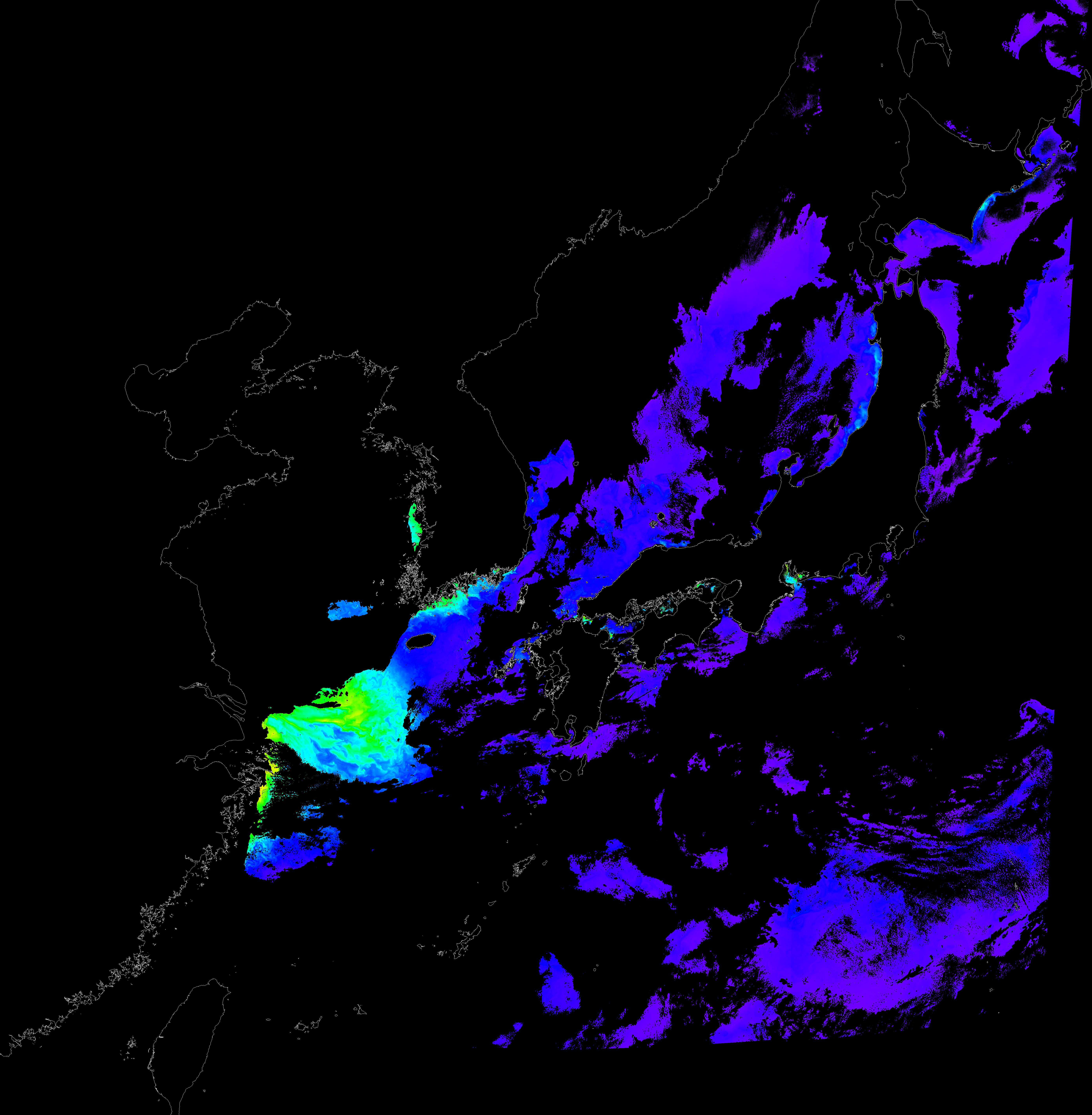 o 2017년 02월 28일 천리안 GOCI 클로로필 a 위성영상입니다.