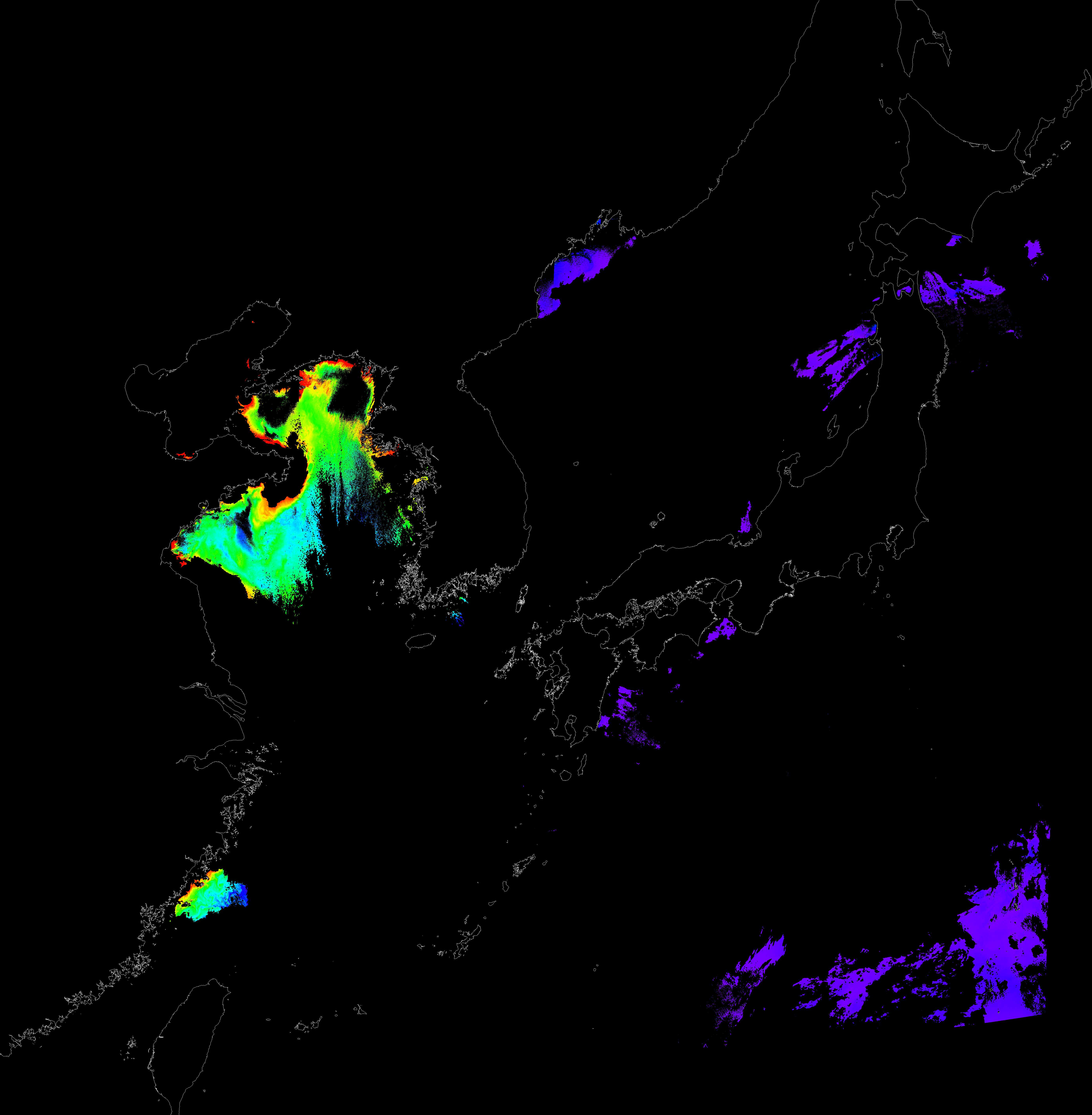 o 2017년 03월 02일 천리안 GOCI 클로로필 a 위성영상입니다.