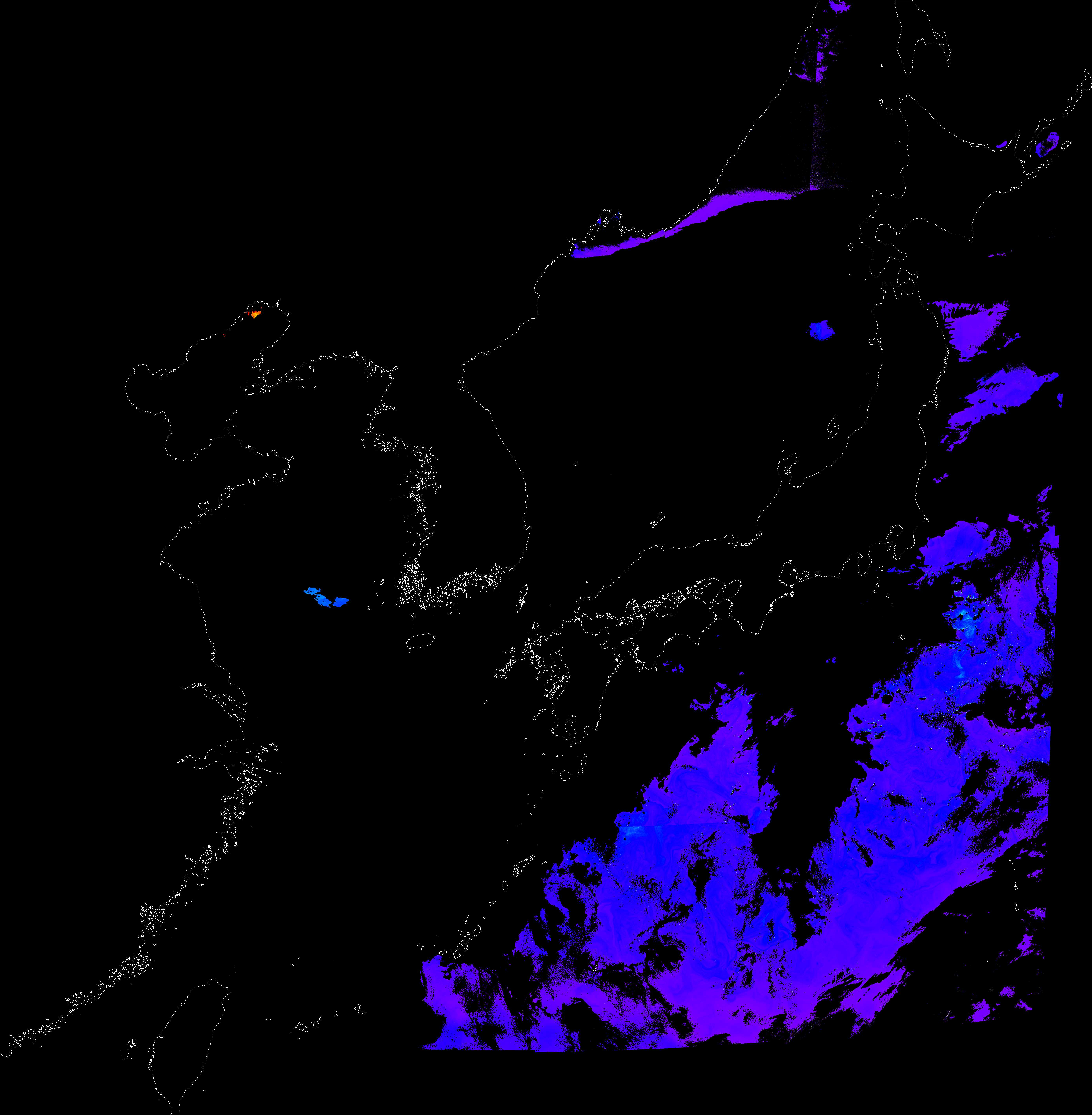 o 2017년 03월 05일 천리안 GOCI 클로로필 a 위성영상입니다.