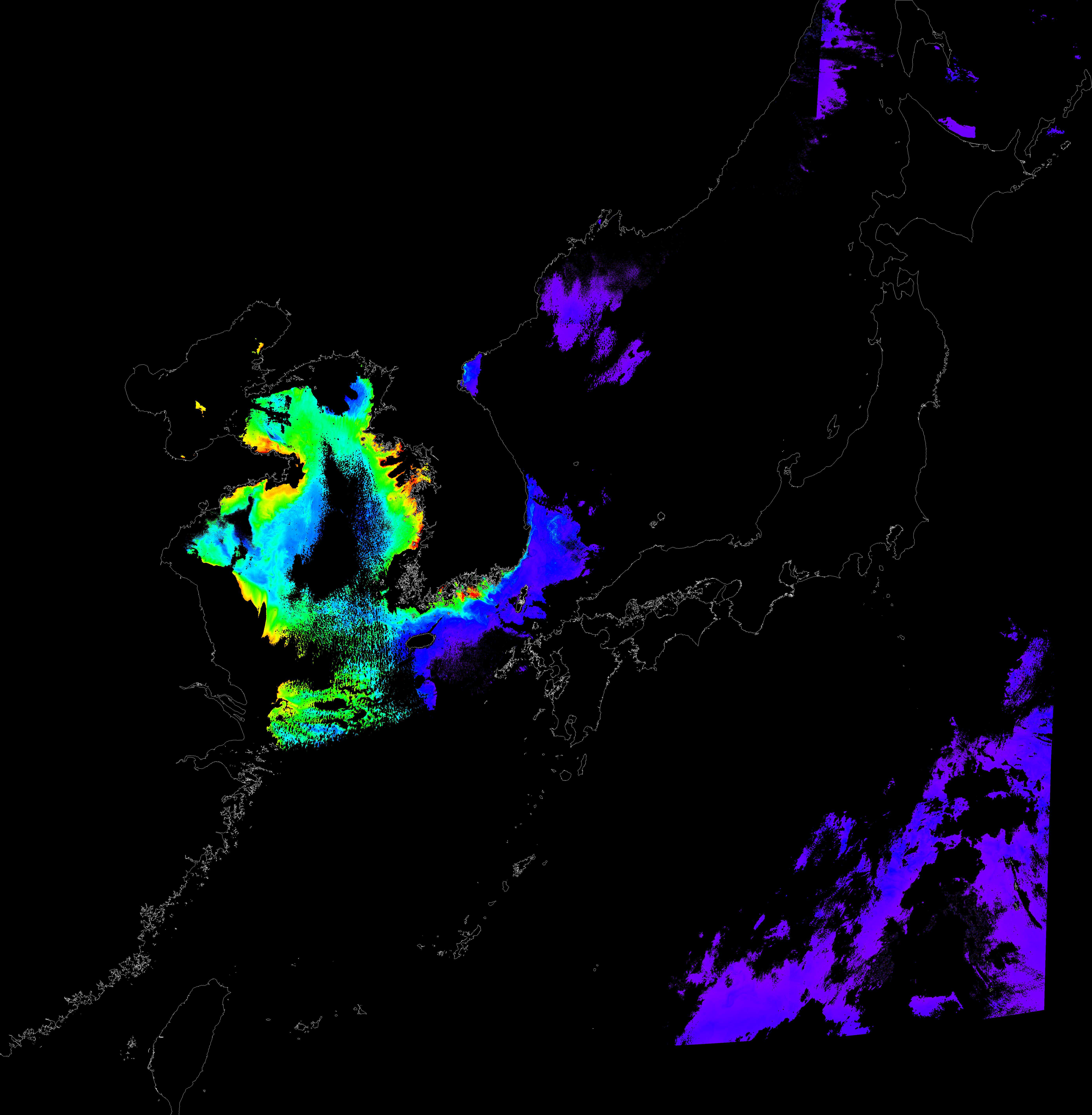 o 2017년 03월 06일 천리안 GOCI 클로로필 a 위성영상입니다.