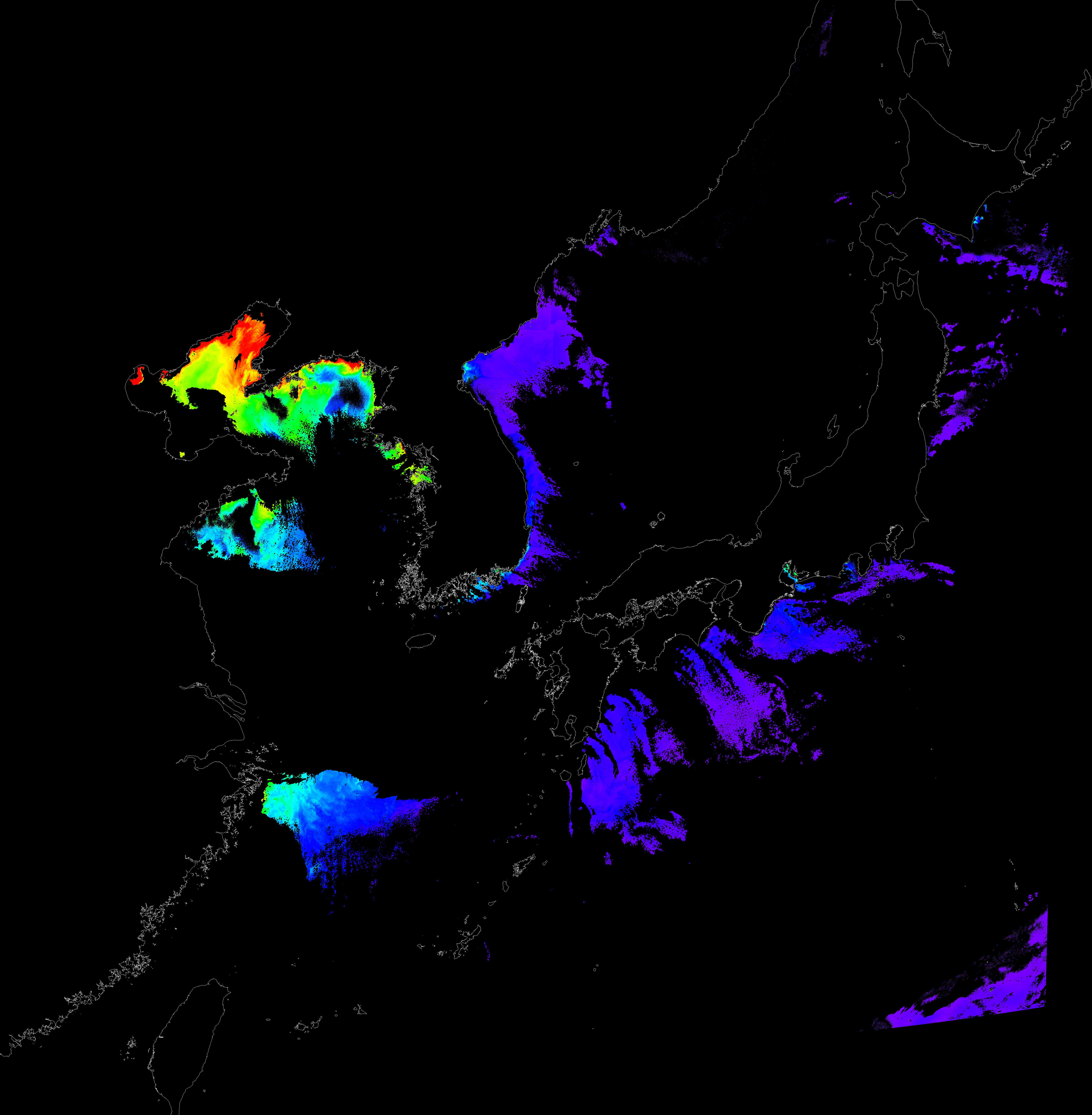 o 2017년 03월 07일 천리안 GOCI 클로로필 a 위성영상입니다.