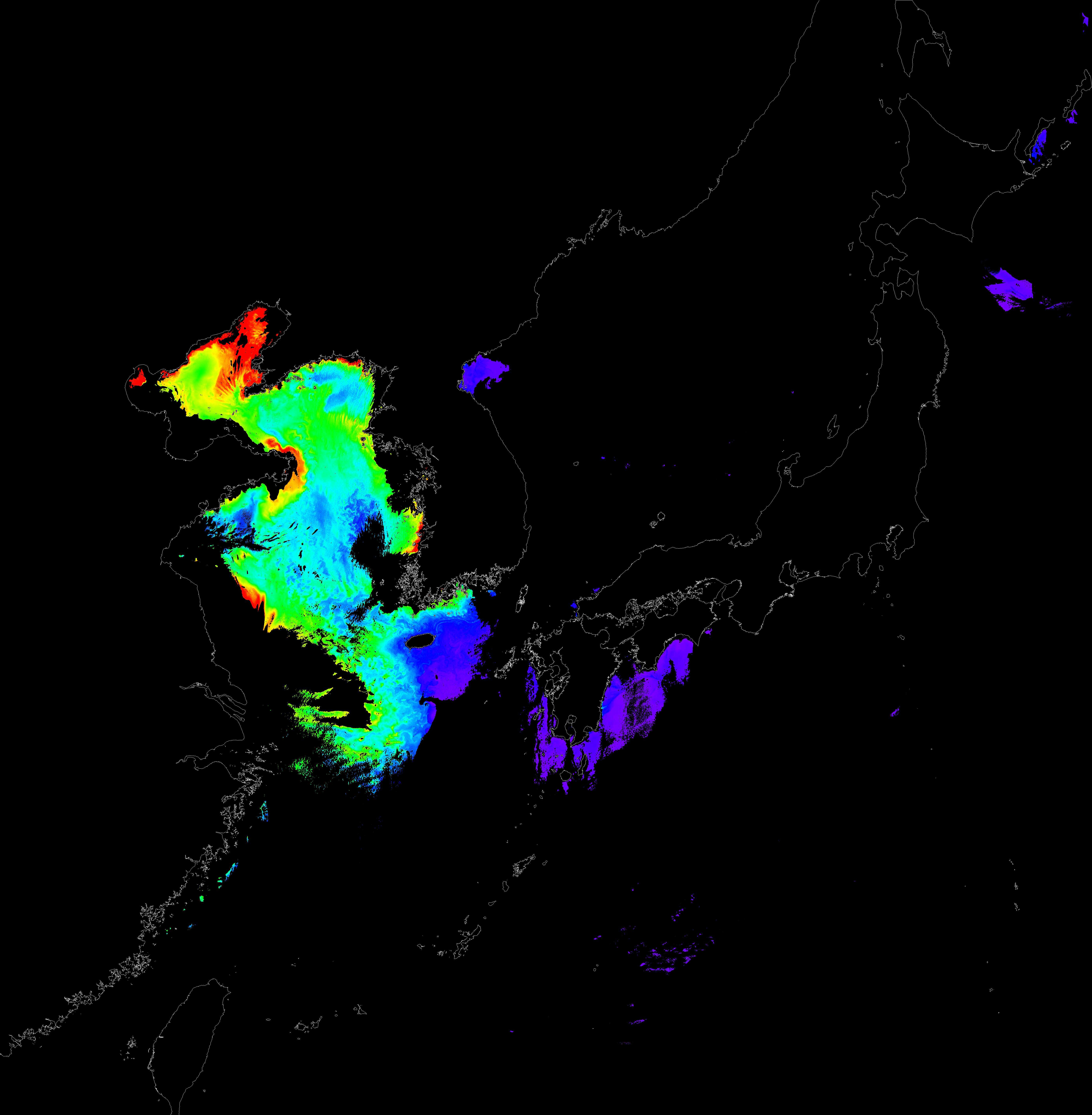 o 2017년 03월 14일 천리안 GOCI 클로로필 a 위성영상입니다.