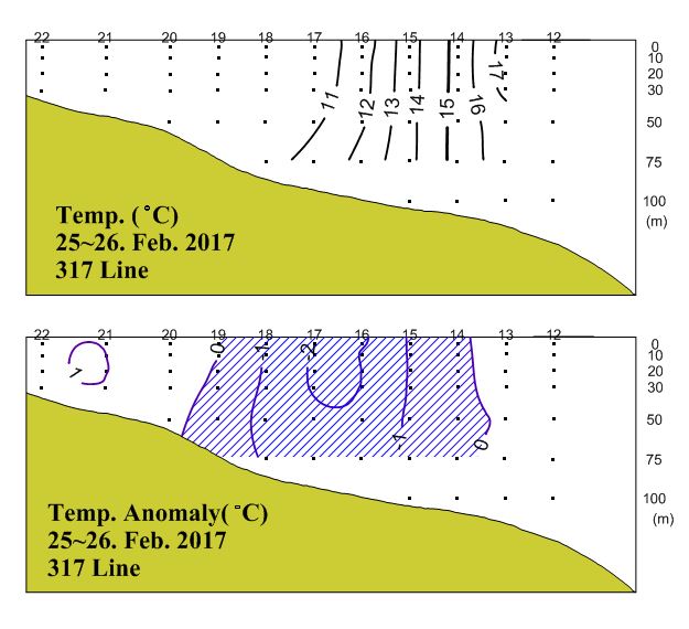 ◦ 2017년 2월 25~26일 국립수산과학원 기후변화연구과에서 조사한 동중국해 북부해역(317선)의 수온 수직분포도와 평년편차도입니다. ◦ 조사해역 내 10∼17℃의 연직적으로 균일한 수온분포를 보였으며, 조사해역의 동쪽으로 갈수로 수온이 높아지는 분포를 보였습니다. ◦ 평년에 비해 정점 14∼19사이에서 1∼2℃ 범위의 저온현상을 보였고, 이를 제외한 조사해역에서 1℃ 내외의 고온현상을 보였습니다. =$row['content']?> =$row['content']?> =$row['content']?> |