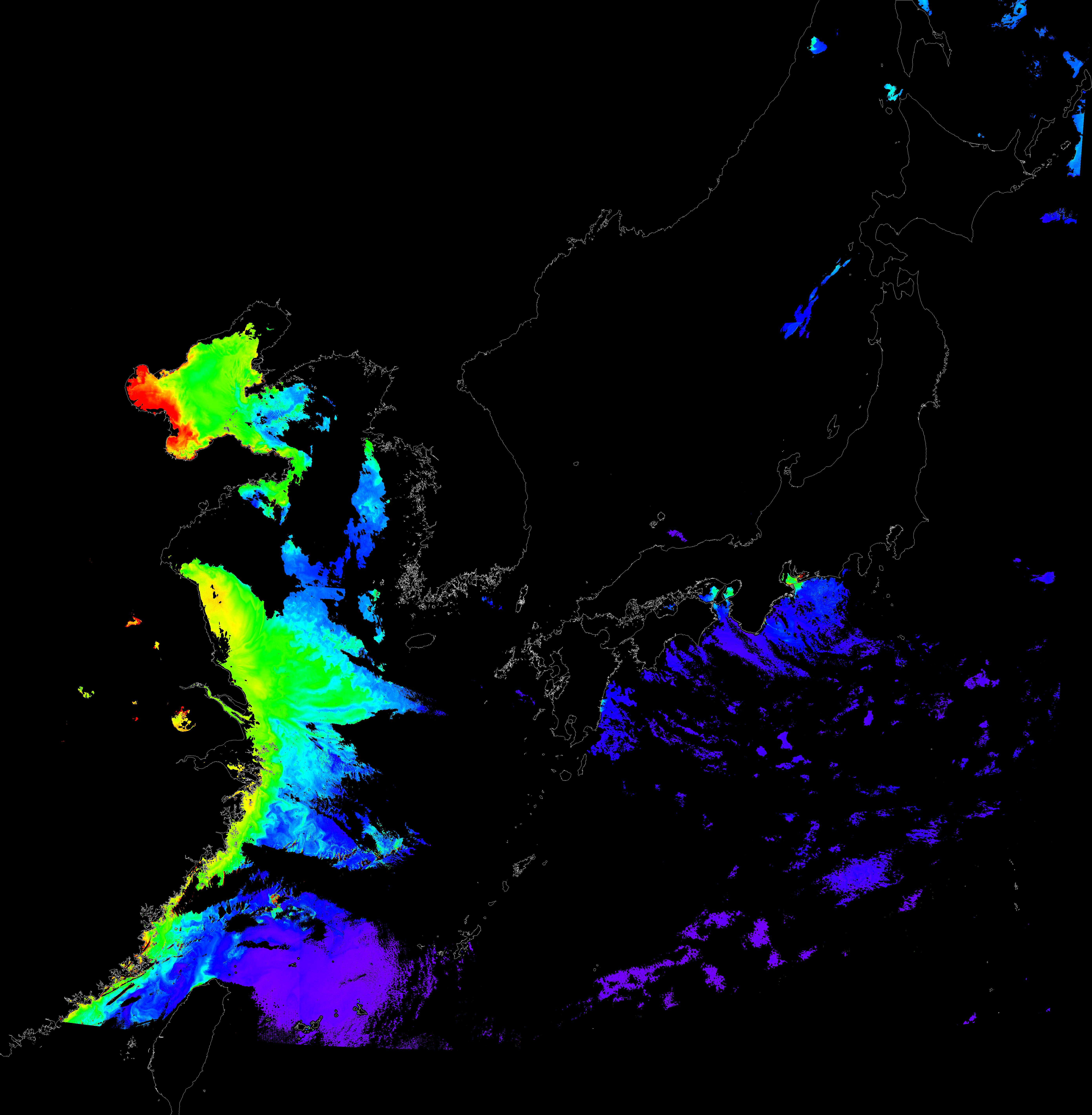 o 2017년 03월 27일 천리안 GOCI 클로로필 a 위성영상입니다.