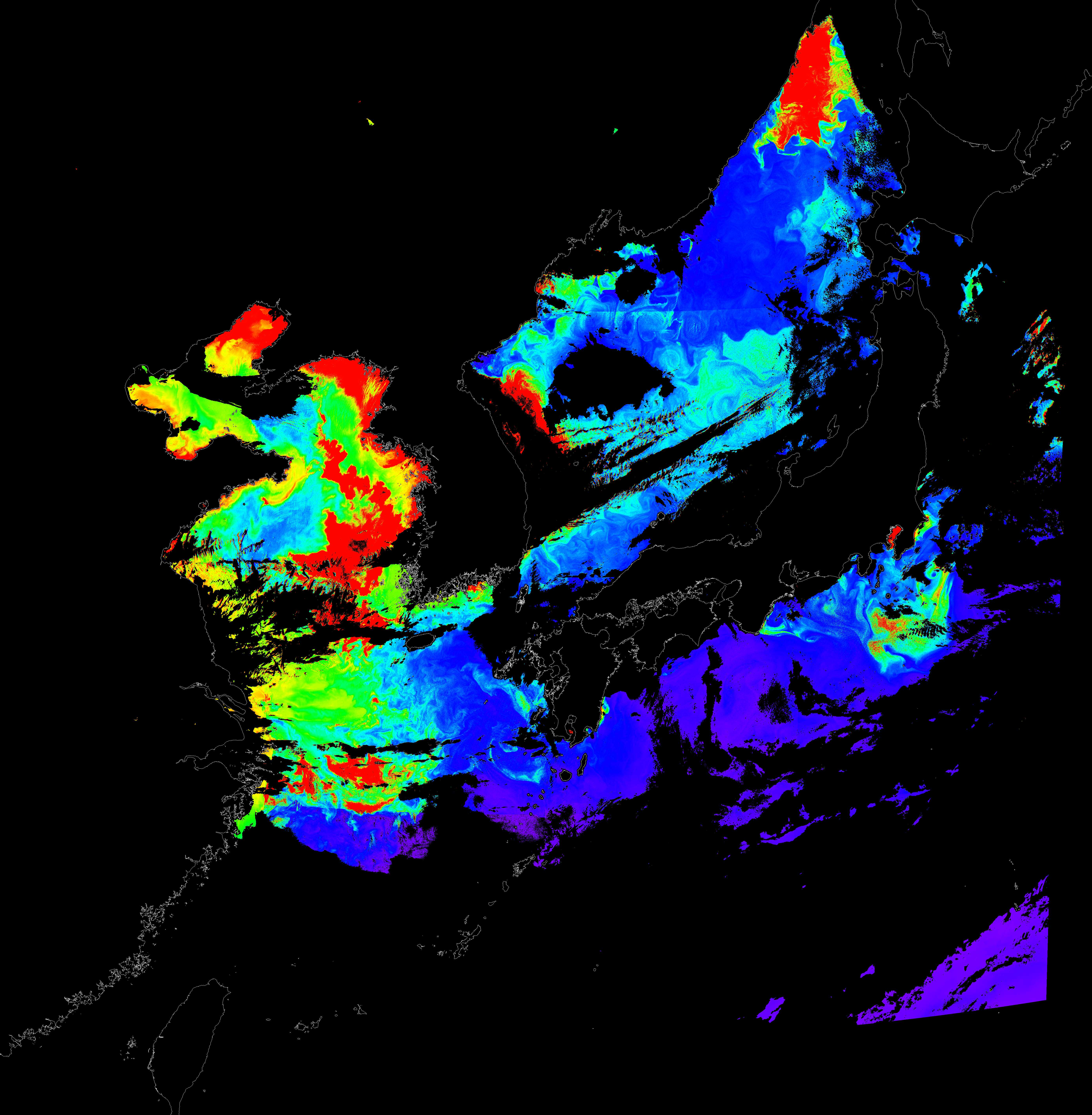 o 2017년 04월 12일 천리안 GOCI 클로로필 a 위성영상입니다.