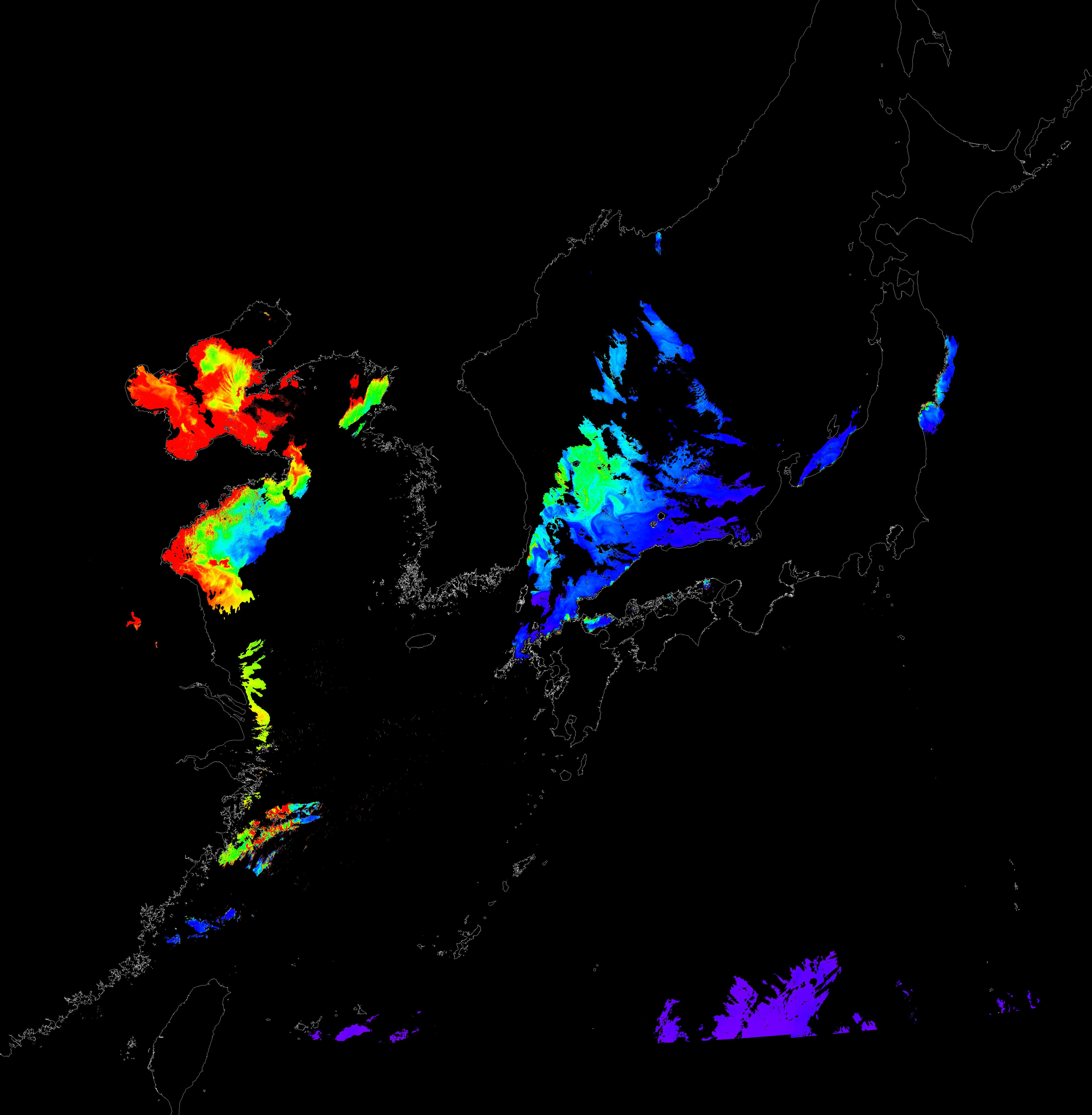 o 2017년 04월 18일 천리안 GOCI 클로로필 a 위성영상입니다.