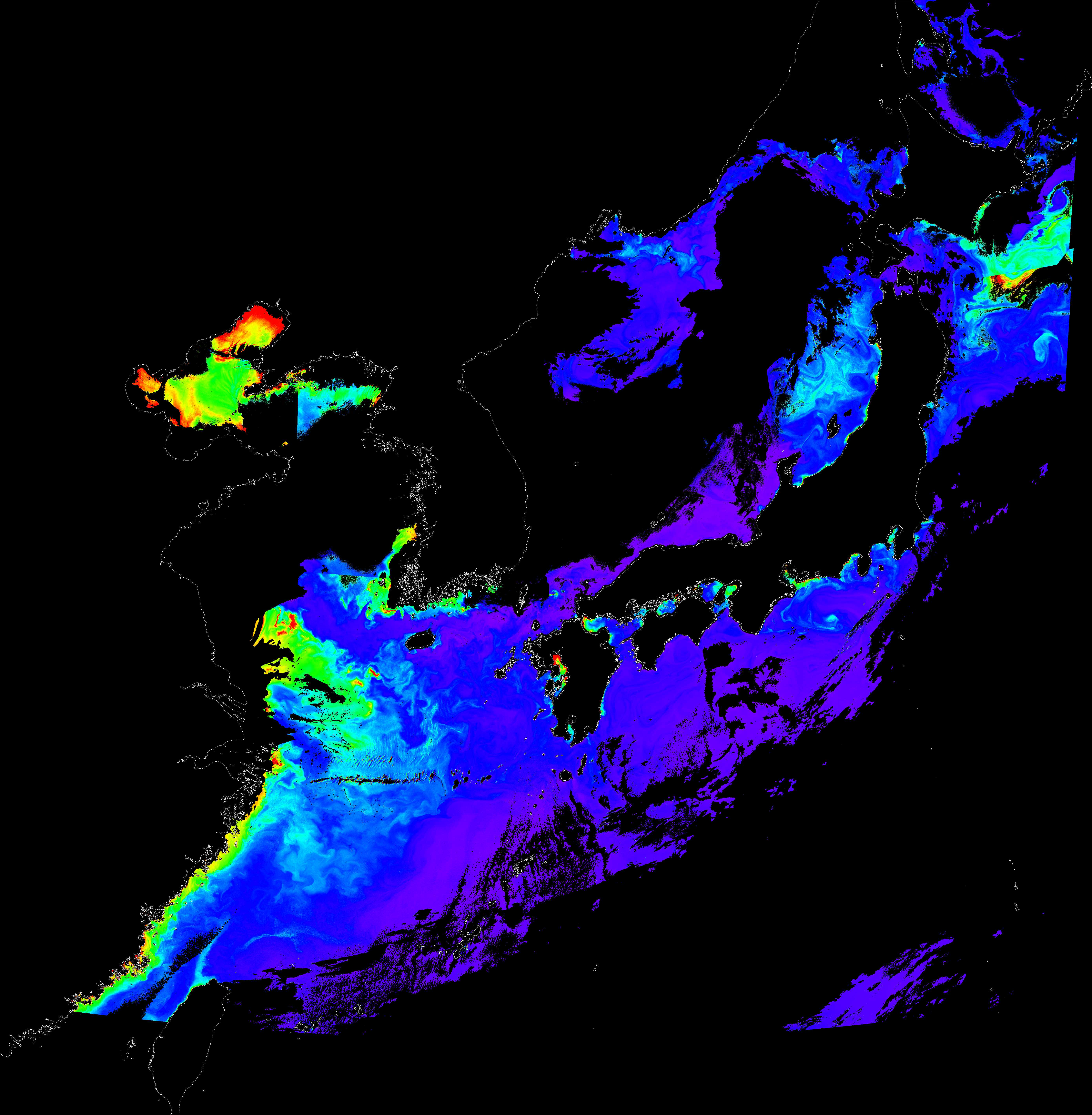 o 2017년 04월 28일 천리안 GOCI 클로로필 a 위성영상입니다.