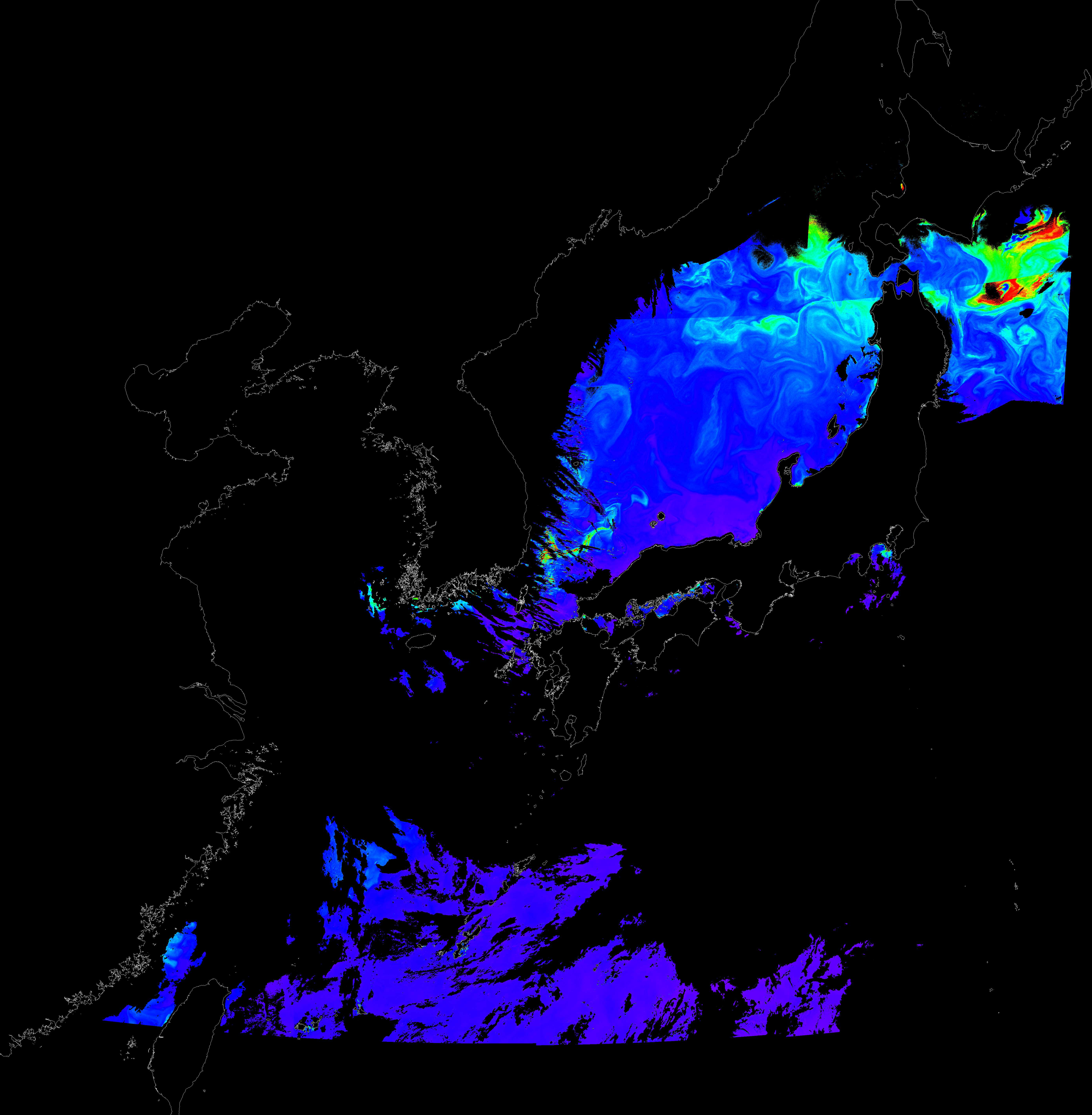 o 2017년 05월 04일 천리안 GOCI 클로로필 a 위성영상입니다.