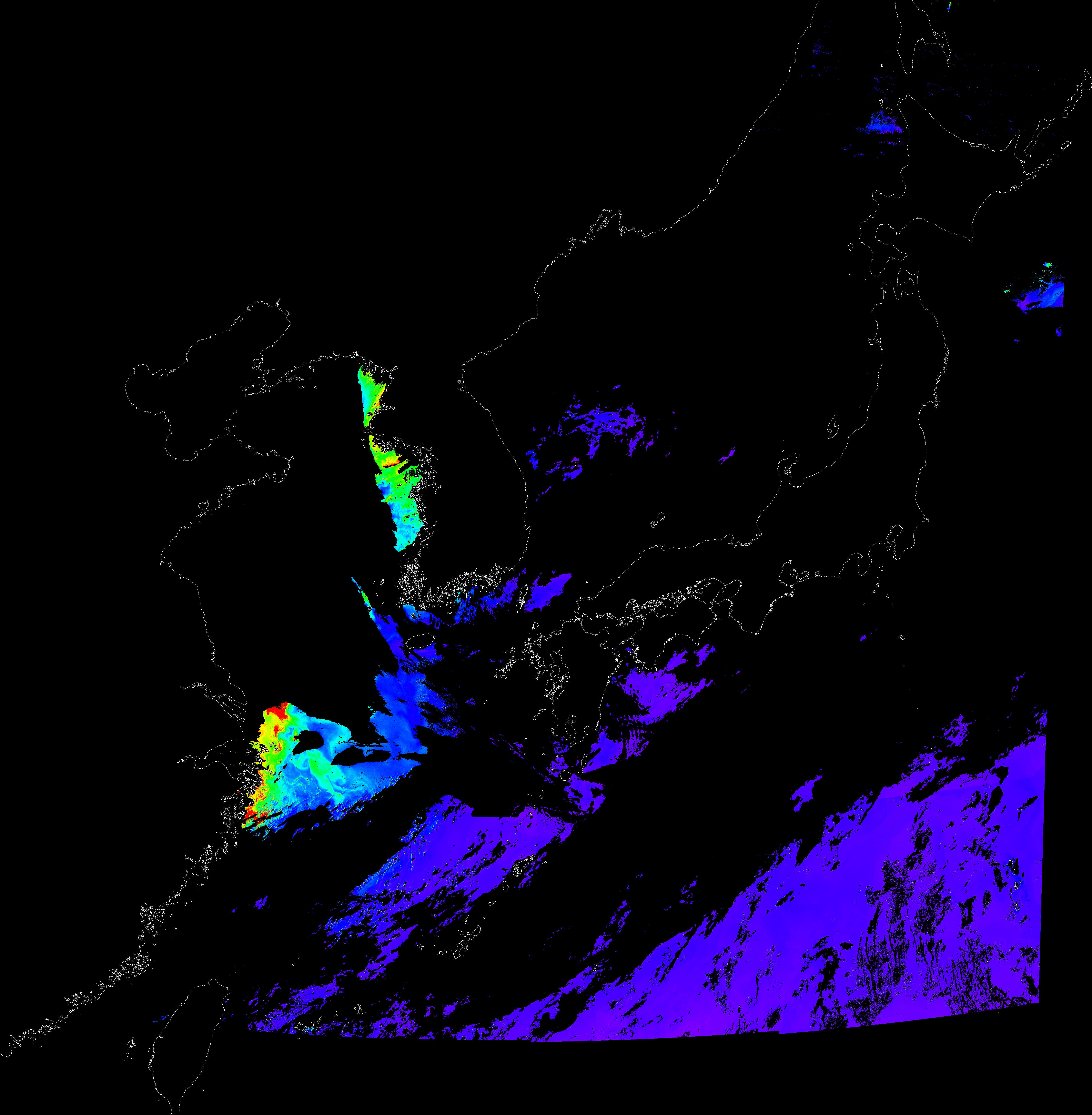 o 2017년 05월 10일 천리안 GOCI 클로로필 a 위성영상입니다.