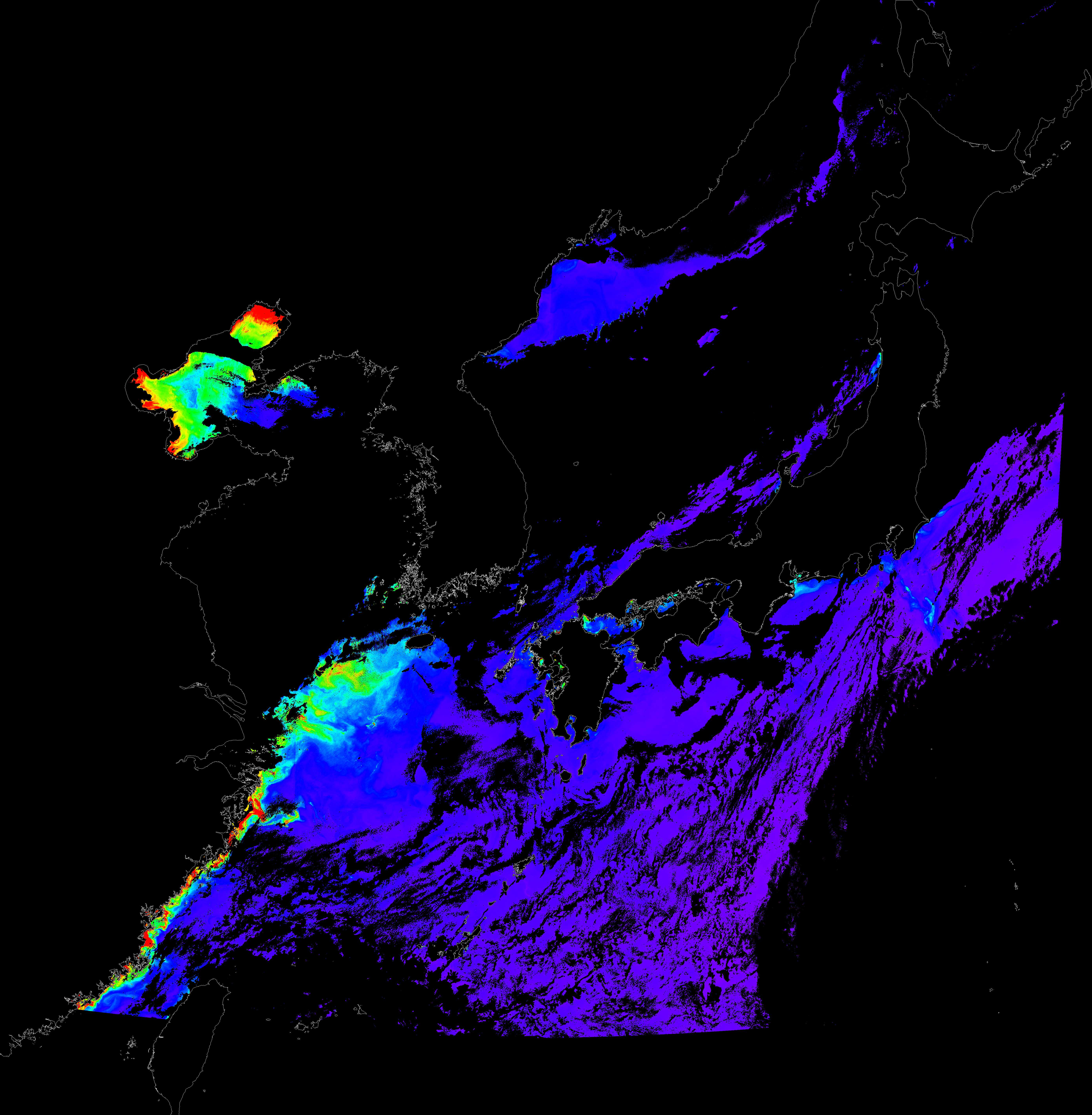 o 2017년 08월 30일 천리안 GOCI 클로로필 a 위성영상입니다. [ GOCI : Geostationary Ocean Color Imager ] o 농도분포는 하단 범례를 참고하시기 바랍니다. o 검은색은 구름을 나타냅니다.