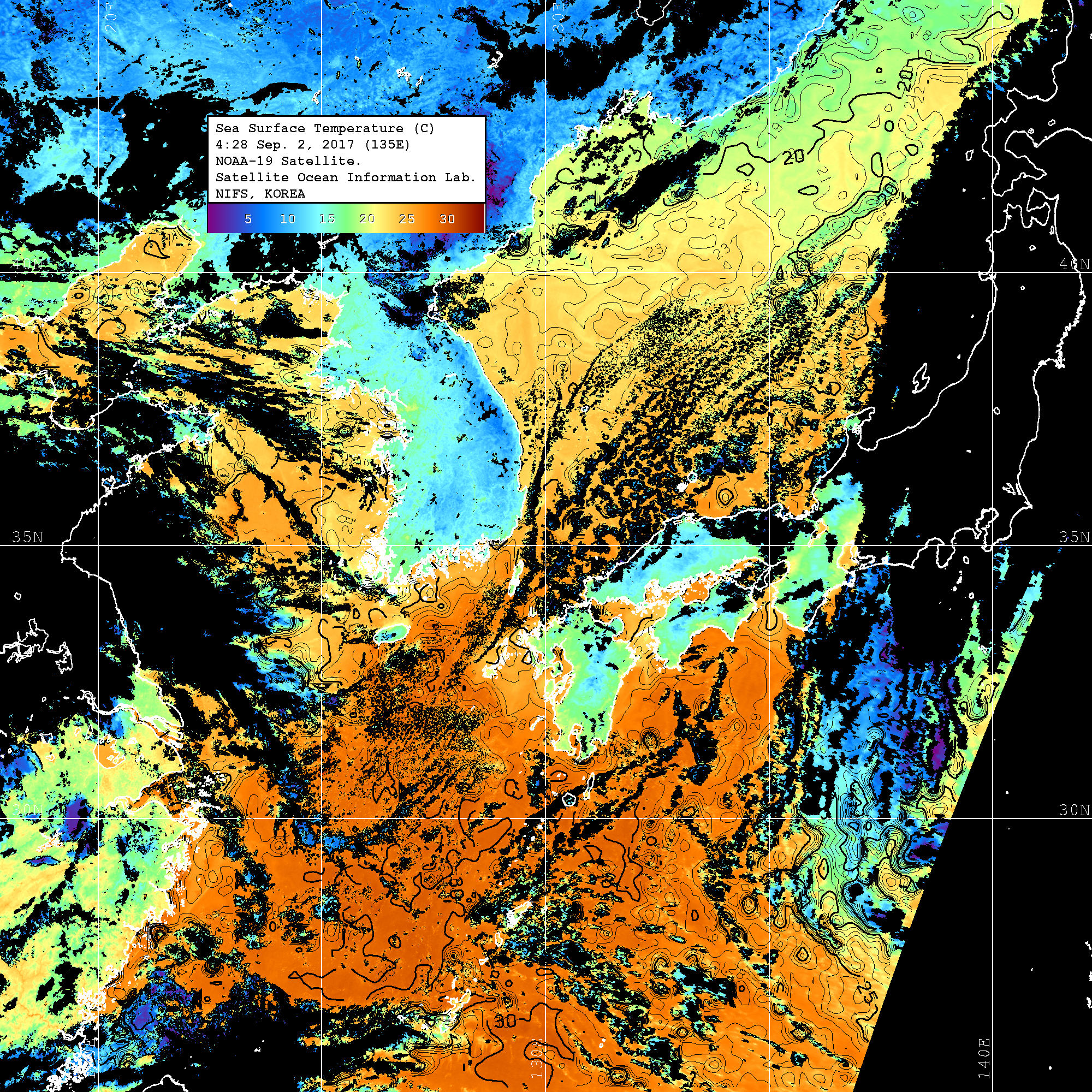 o 영상 시간 및 수온분포는 범례를 참고하시기 바랍니다.