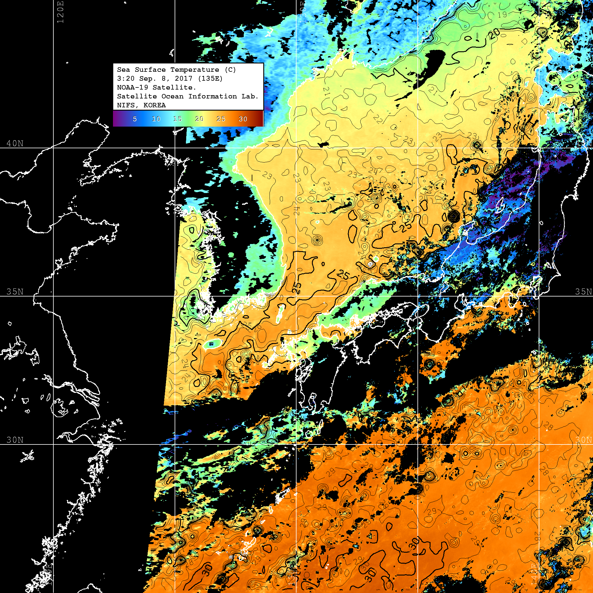 o 영상 시간 및 수온분포는 범례를 참고하시기 바랍니다.