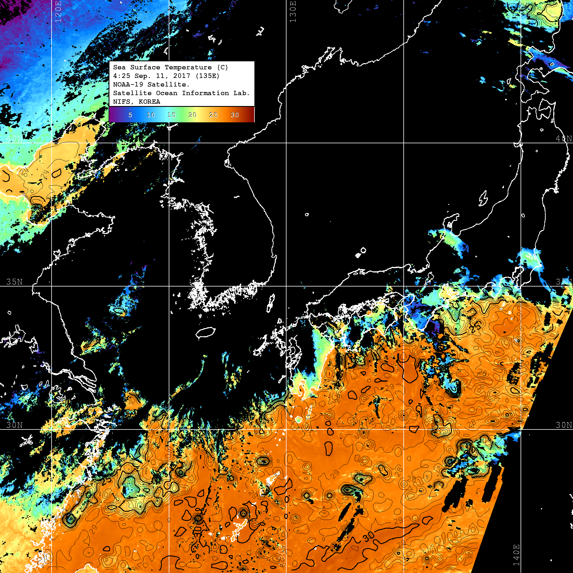 o 영상 시간 및 수온분포는 범례를 참고하시기 바랍니다.