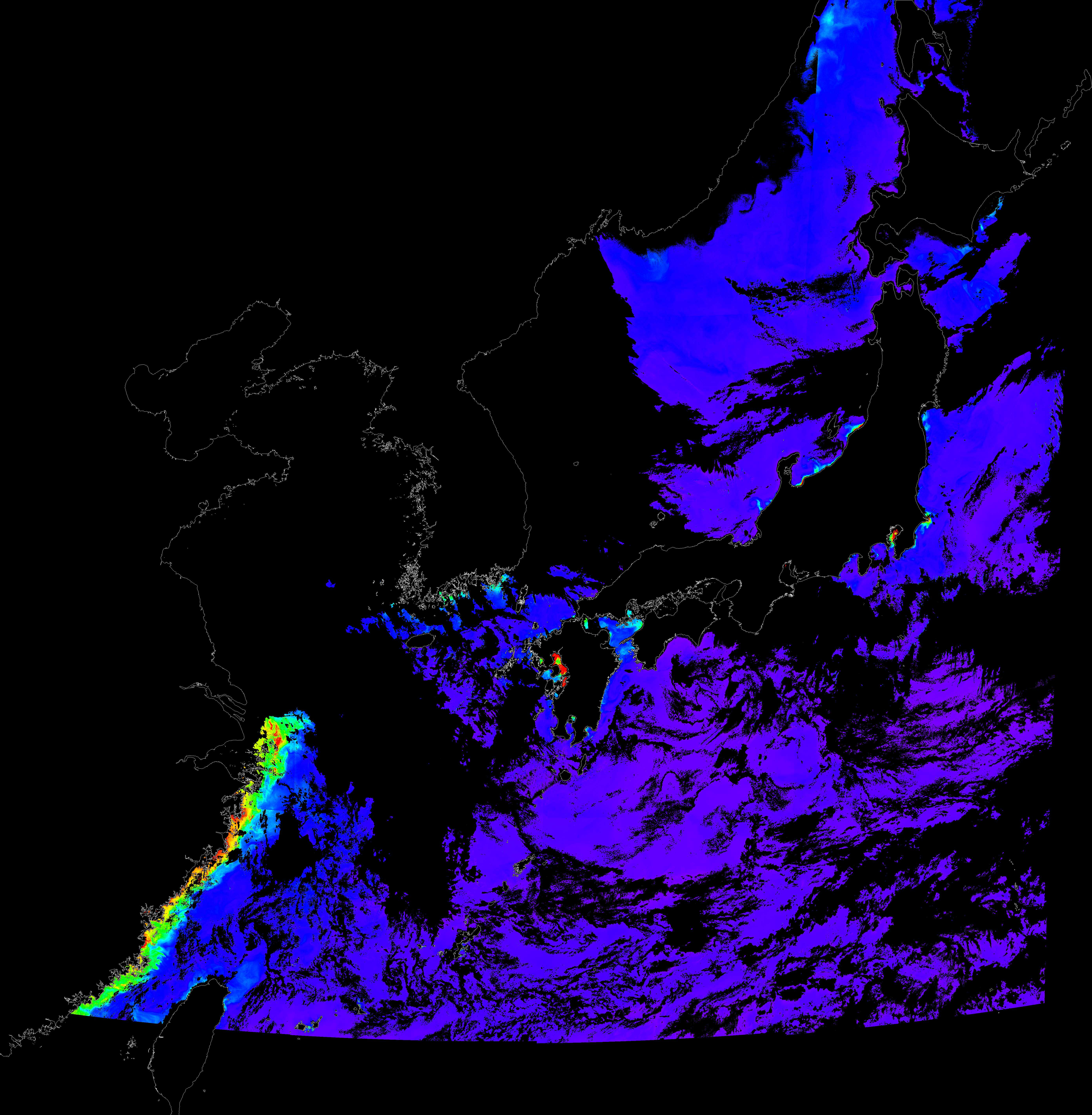 o 2017년 09월 10일 천리안 GOCI 클로로필 a 위성영상입니다. [ GOCI : Geostationary Ocean Color Imager ] o 농도분포는 하단 범례를 참고하시기 바랍니다. o 검은색은 구름을 나타냅니다.