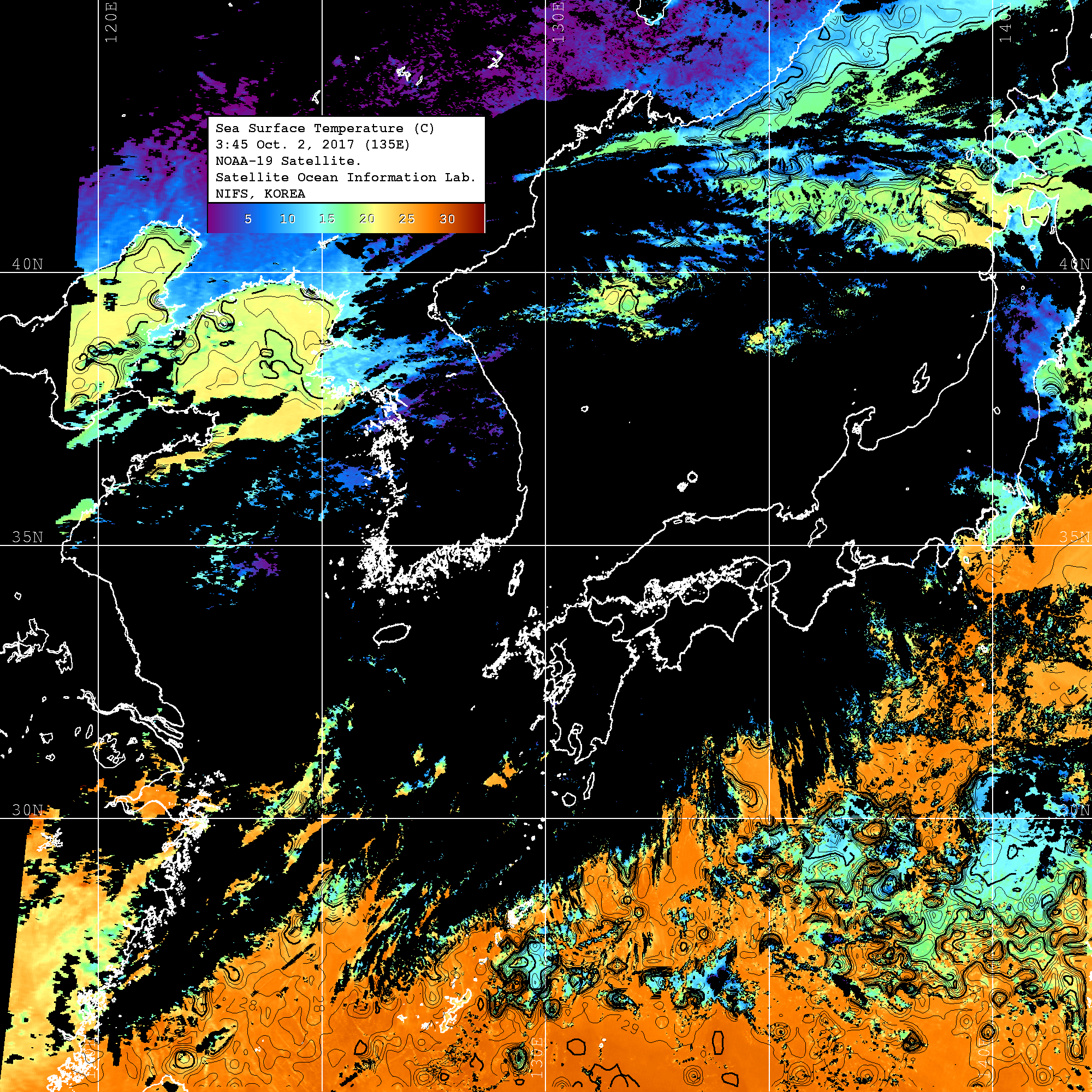 o 영상 시간 및 수온분포는 범례를 참고하시기 바랍니다.