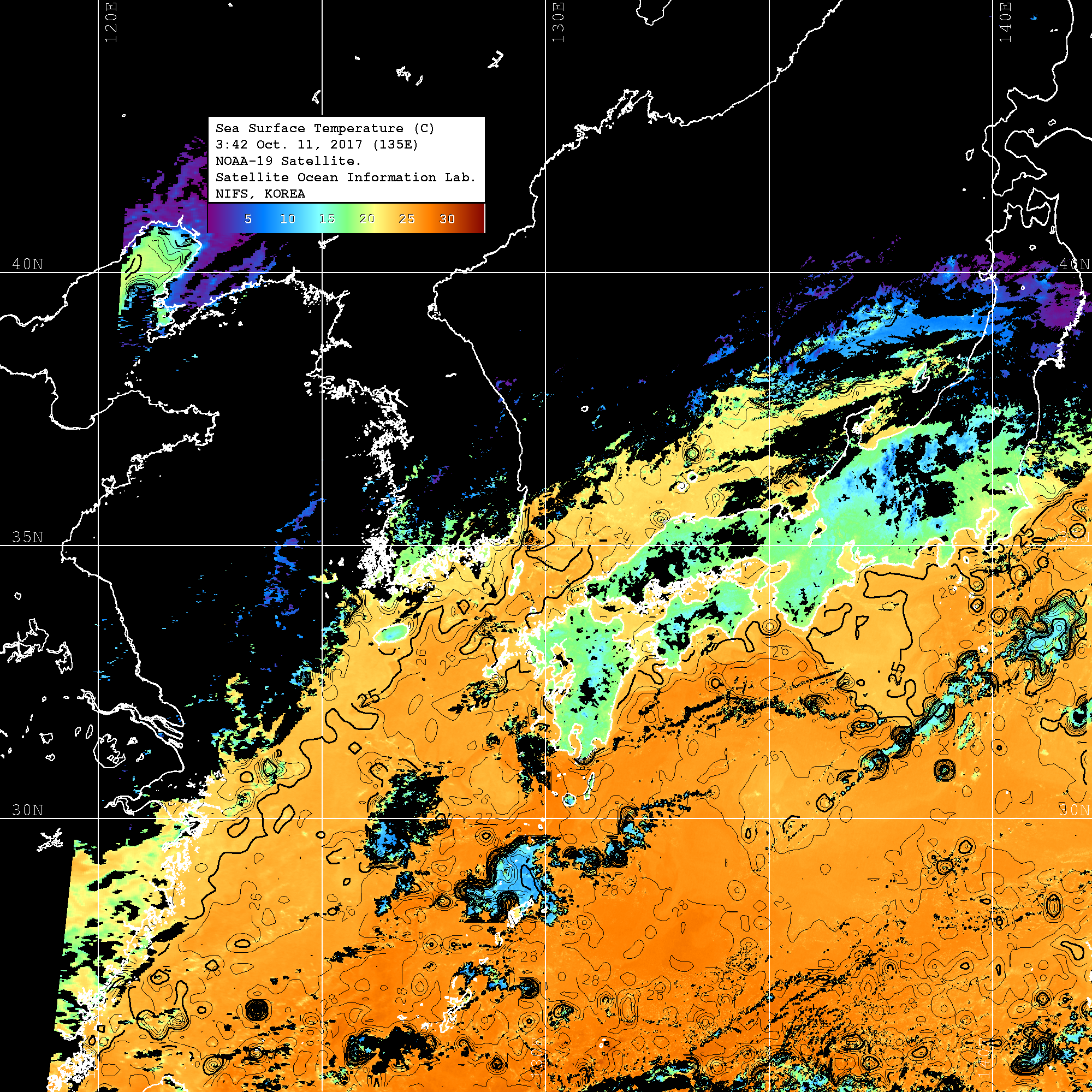 o 영상 시간 및 수온분포는 범례를 참고하시기 바랍니다.