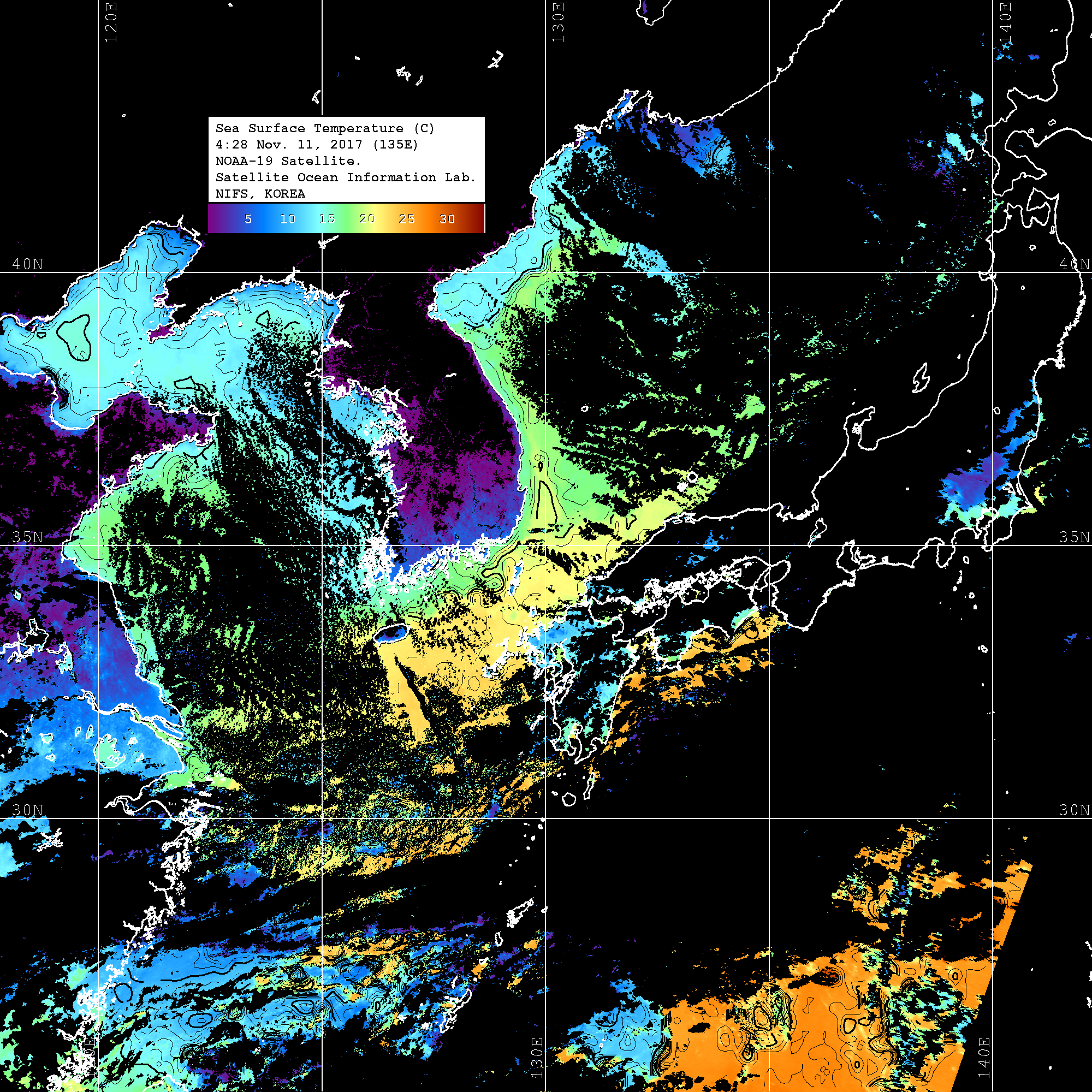 o 영상 시간 및 수온분포는 범례를 참고하시기 바랍니다.