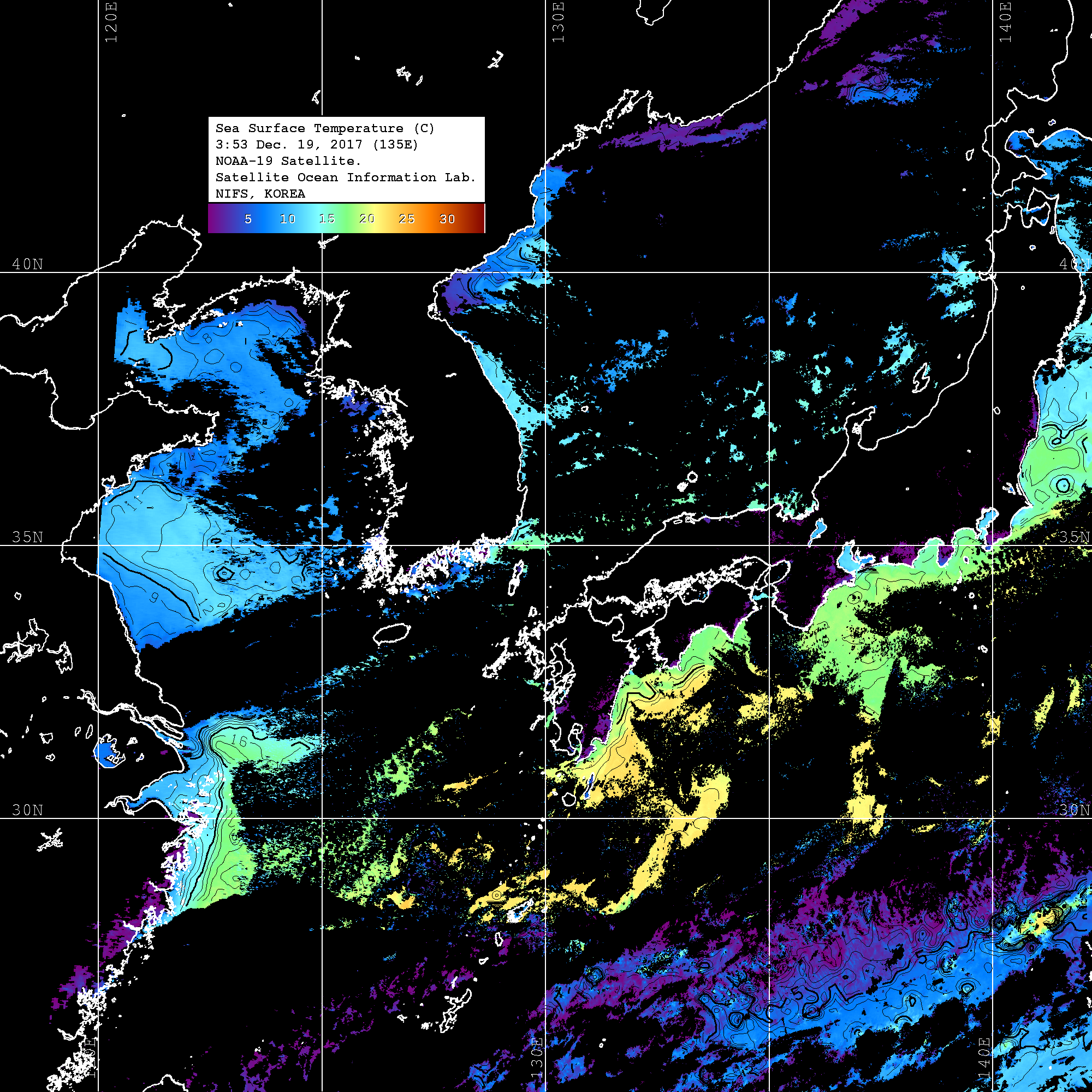 o 영상 시간 및 수온분포는 범례를 참고하시기 바랍니다.