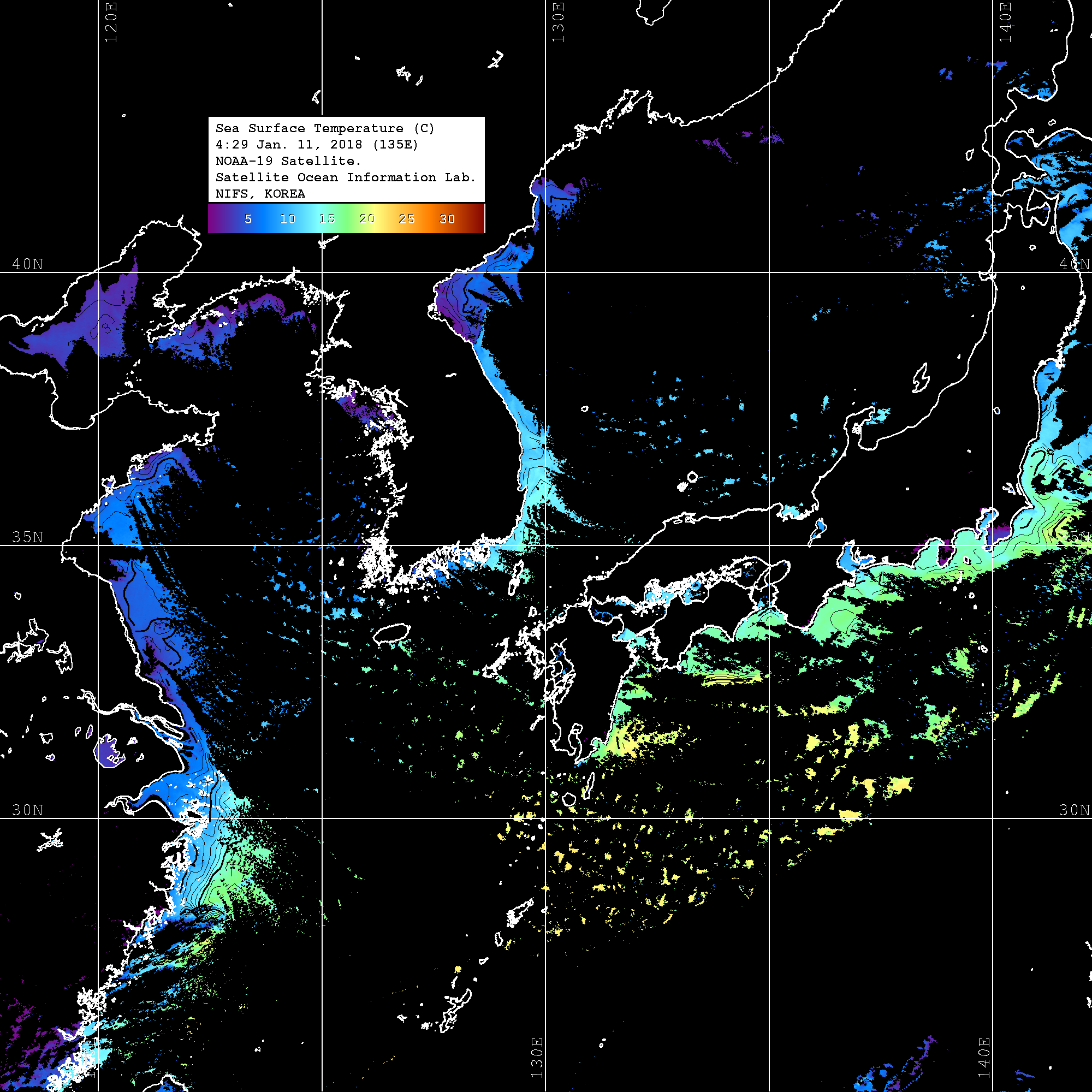 o 2018 년 01 월 11 일 NOAA 위성영상입니다.