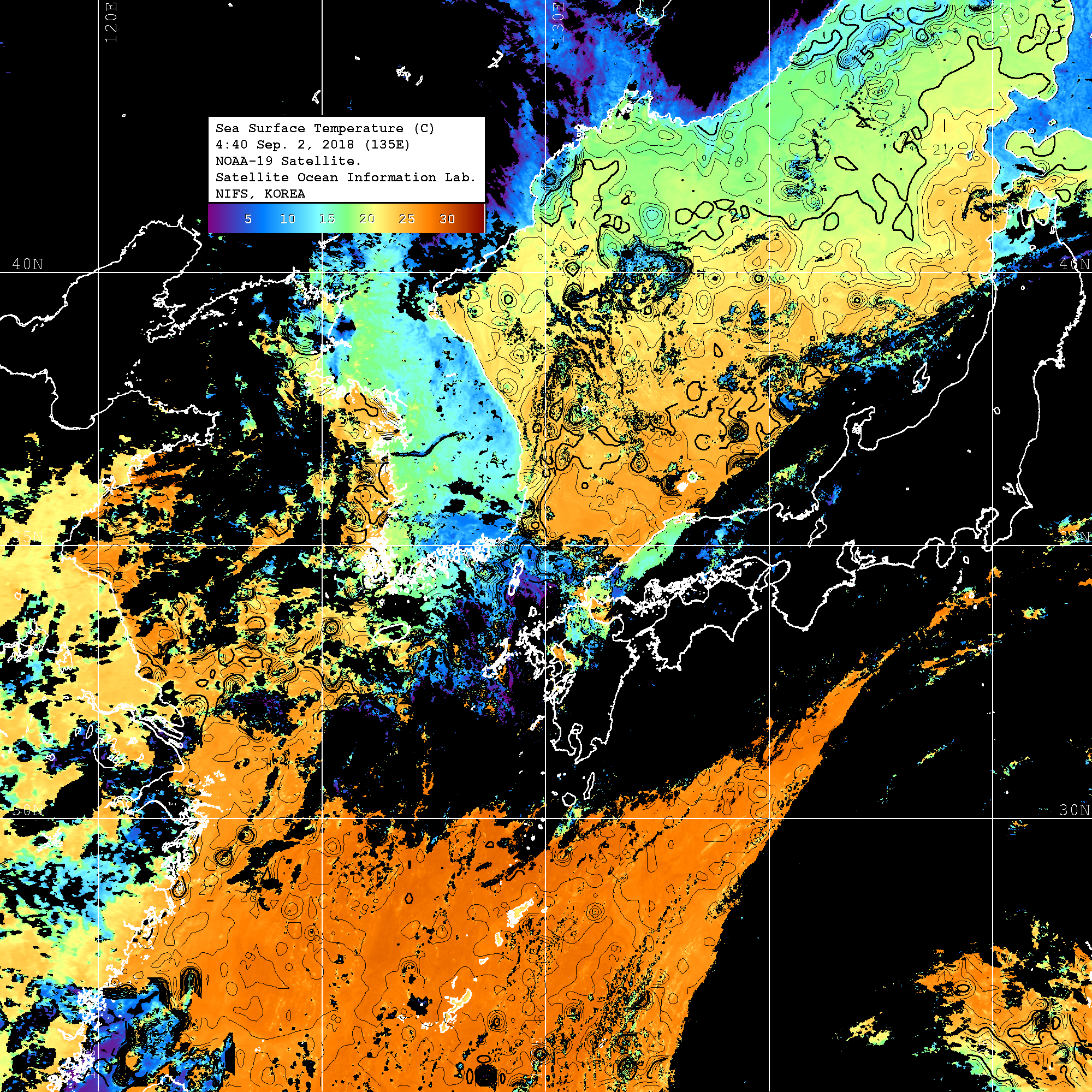 o 영상 시간 및 수온분포는 범례를 참고하시기 바랍니다.